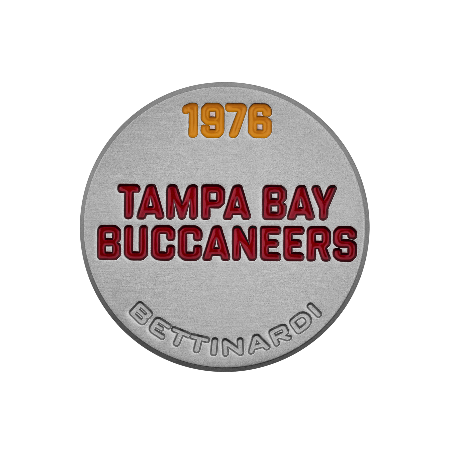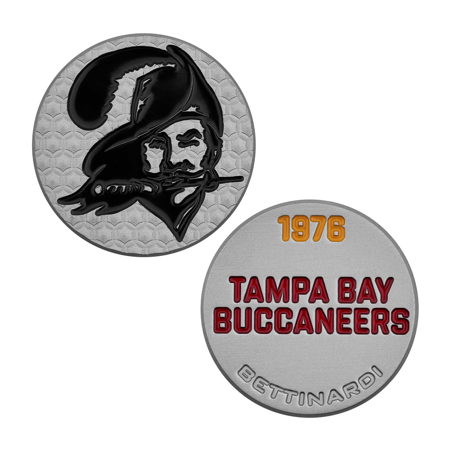 This throwback Diamond Blast ball marker features the Tampa Bay Buccaneers classic mark milled on the front in black over Micro Honeycomb™, with a Tampa Bay Buccaneers wordmark milled on the backside and filled in red and orange. Limited quantities are available.
