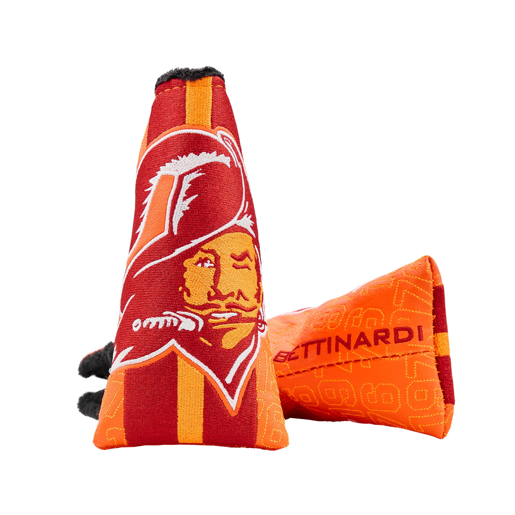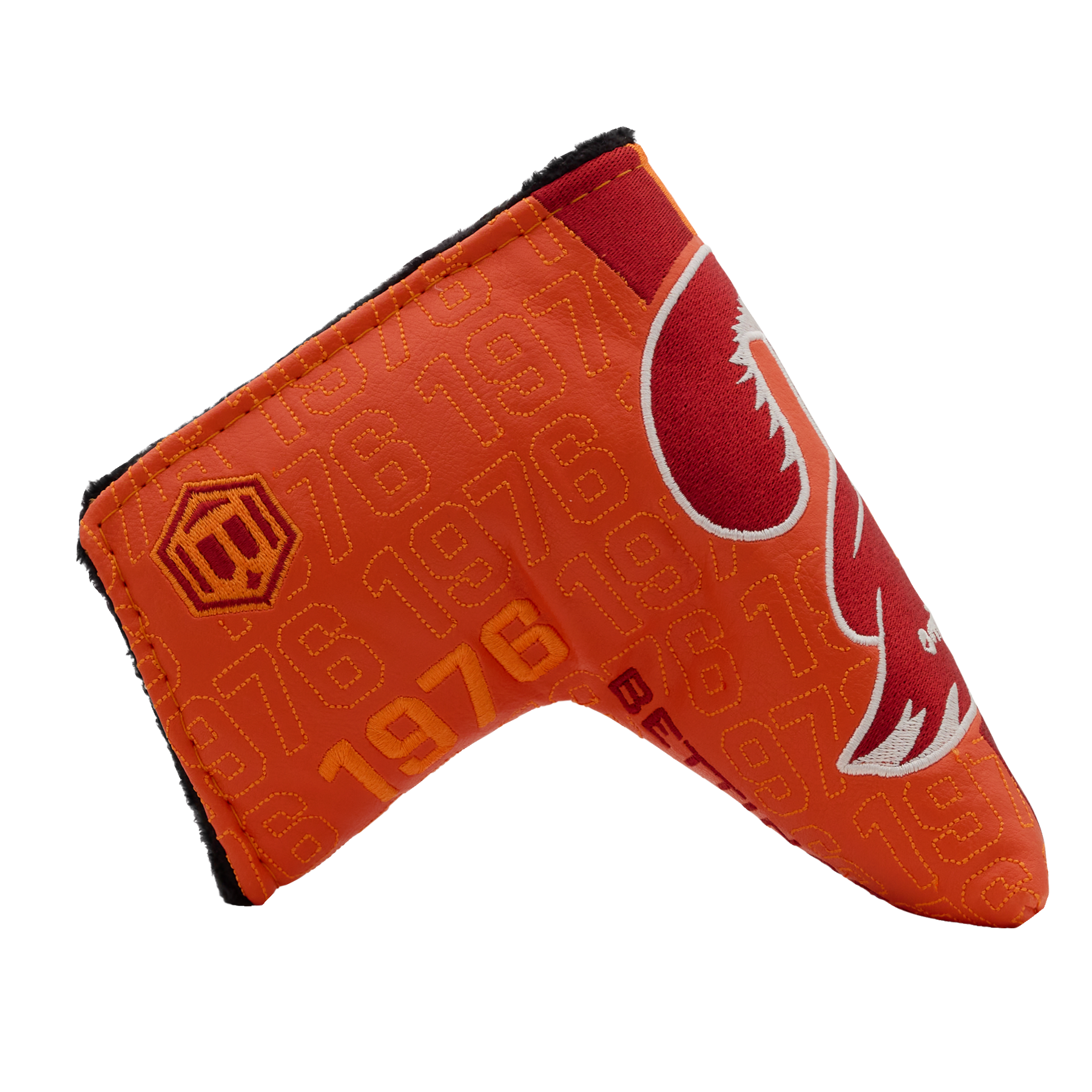 Our throwback Tampa Bay Buccaneers blade headcover showcases the classic mark on the front with "Tampa Bay Buccaneers" on the side and a Hex B on the opposite side, with red accent wordmarks. Finished with a black plush interior and a magnetic closure, this blade putter headcover protects your putter while showcasing your Tampa Bay Buccaneers pride on every green. Limited quantities available.