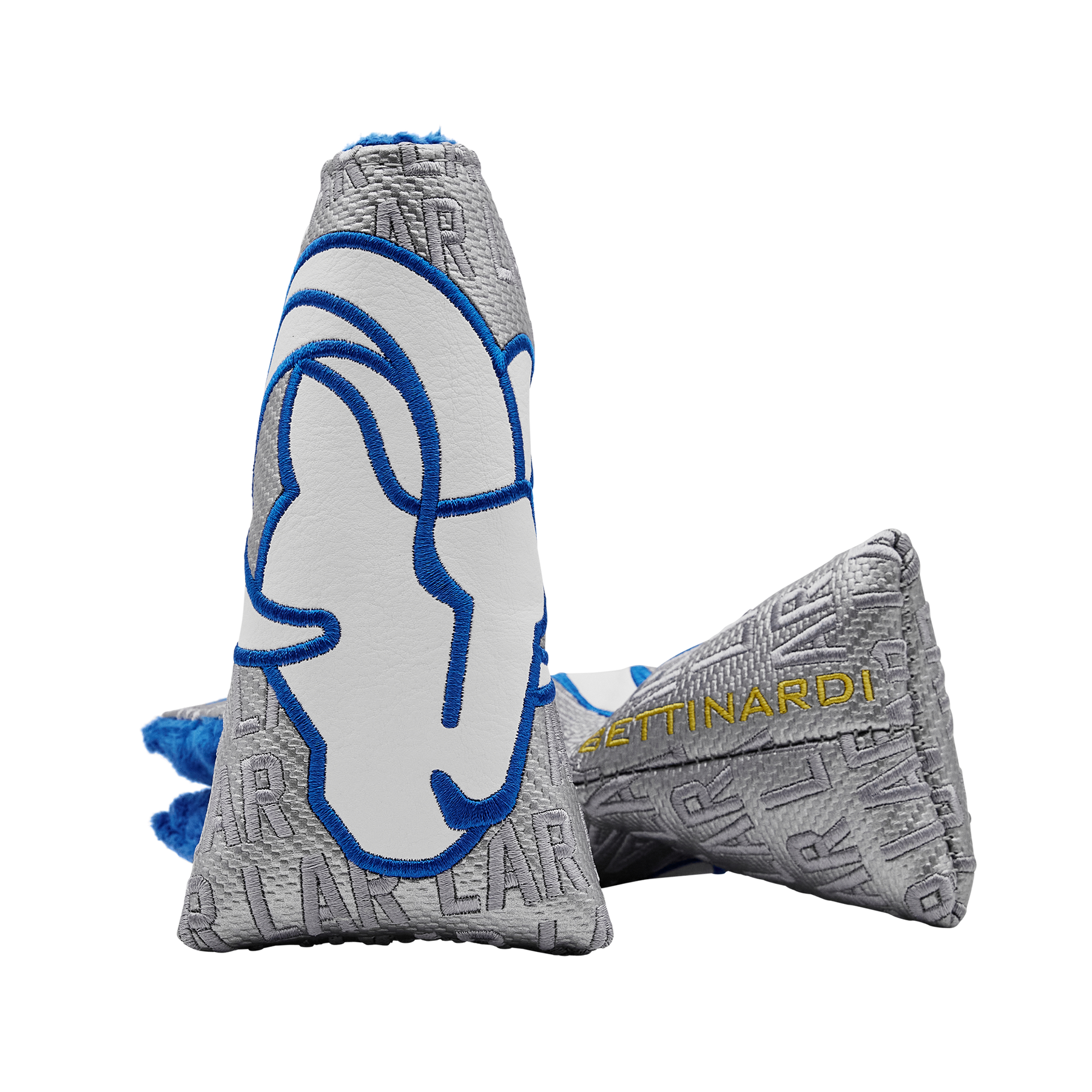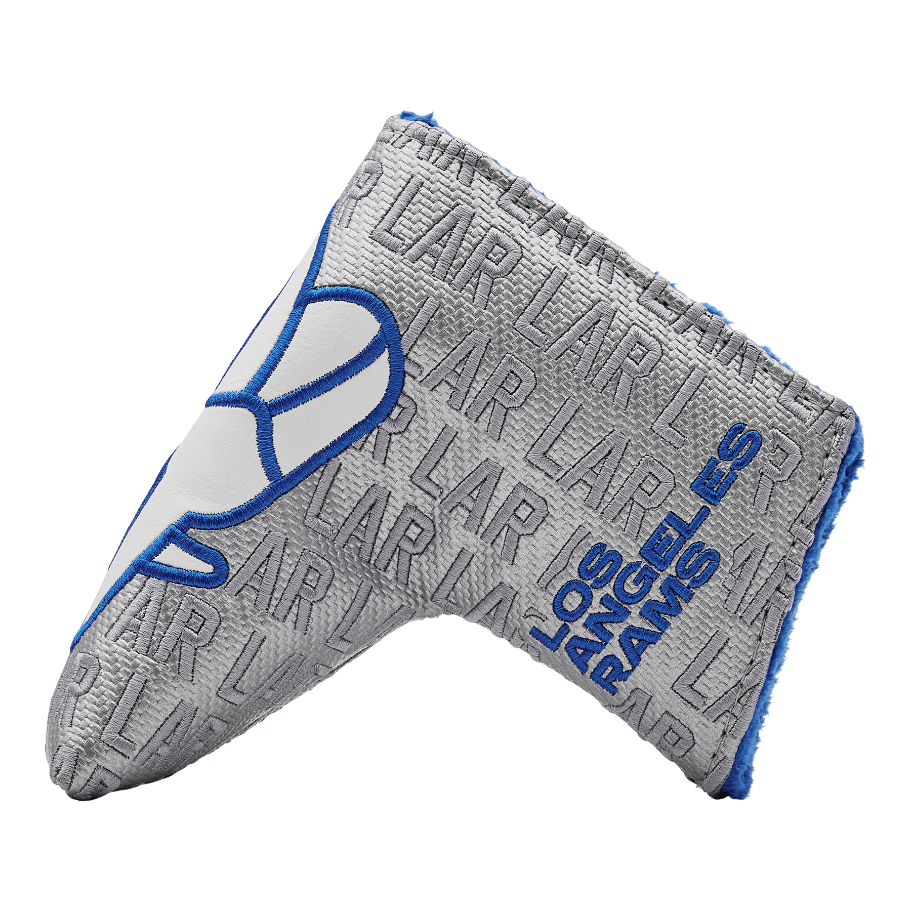 Go Rams! Featuring a blue plush interior with a magnetic closure, this blade putter headcover protects your putter while showcasing your Los Angeles Rams pride on every green. Stitched on a silver carbon fiber base this headcover showcases the Los Angeles Rams secondary logo, Los Angeles Rams on the side and a color matched Hex B on the opposite side, with gray accent wordmarks. Limited quantities available.