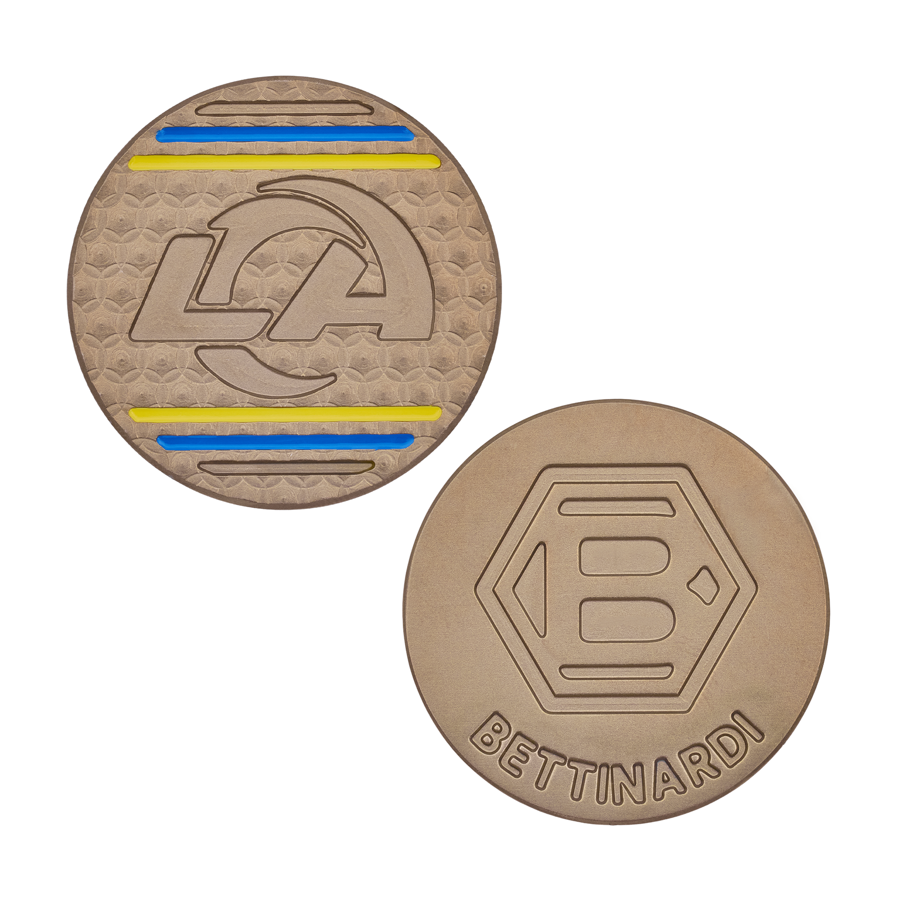 Go Rams! This Gold Flame ball marker features the Los Angeles Rams logo on the front over a Micro Honeycomb™ base with blue and yellow paint fills. The reverse showcases a Hex B and Bettinardi. Limited quantities are available. Please allow 5 days for this item to ship.