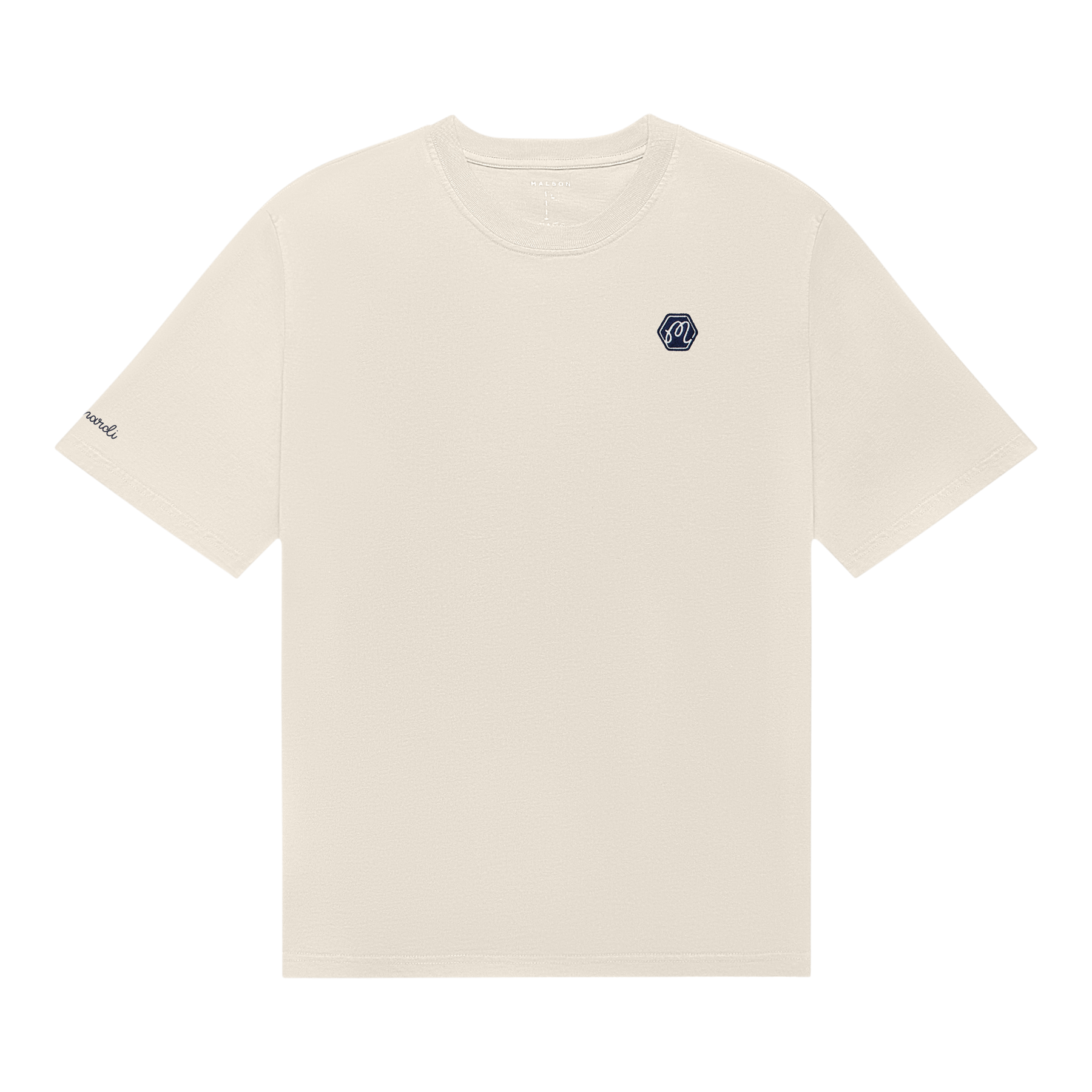 A classic reimagined, this short sleeve t-shirt in Egret is more than just a staple—it’s an elevated essential crafted for effortless wear. For added character, it features screen printed embellishments of collaboration logos and the Gangster Buckets icon on the back. Cut from premium cotton with a relaxed fit, it’s built for days that move from on- to off-course with ease. (100% cotton jersey)