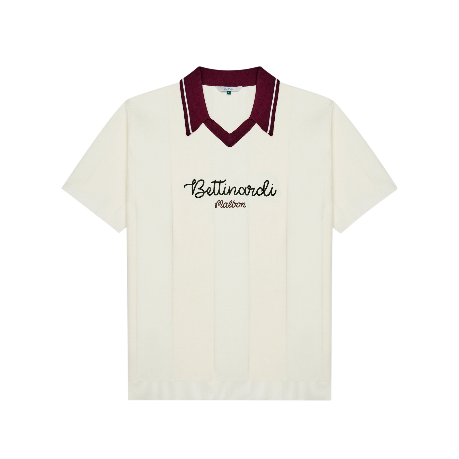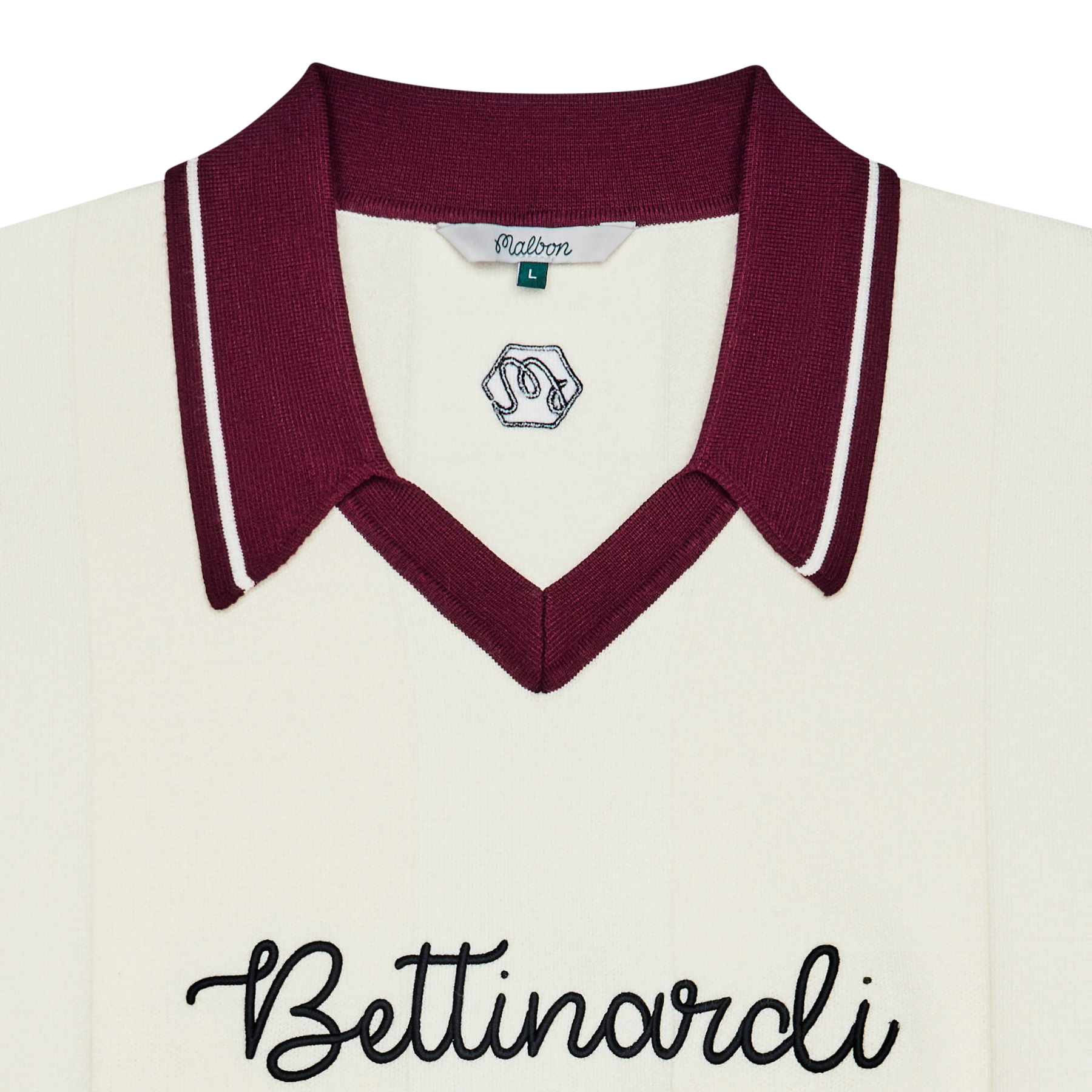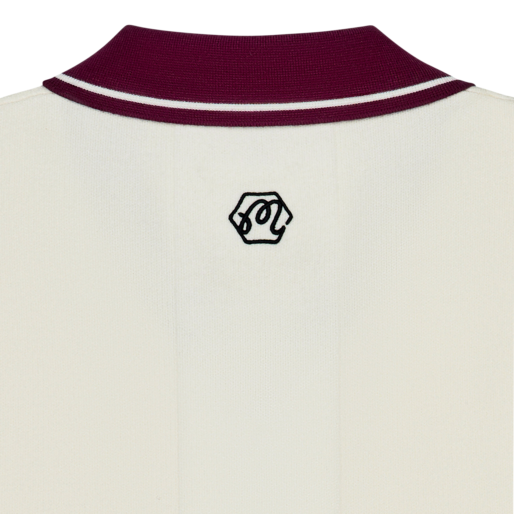Crafted entirely from soft, breathable cotton, the Malbon x Bettinardi Knit Polo in Egret is a comfortable must-have for the season ahead. Its relaxed fit and ribbed trim make for a classic design, pairing easily with any trouser. Finished with a Cabernet collar and the collaboration wordmark embroidered onto the front. (100% cotton)