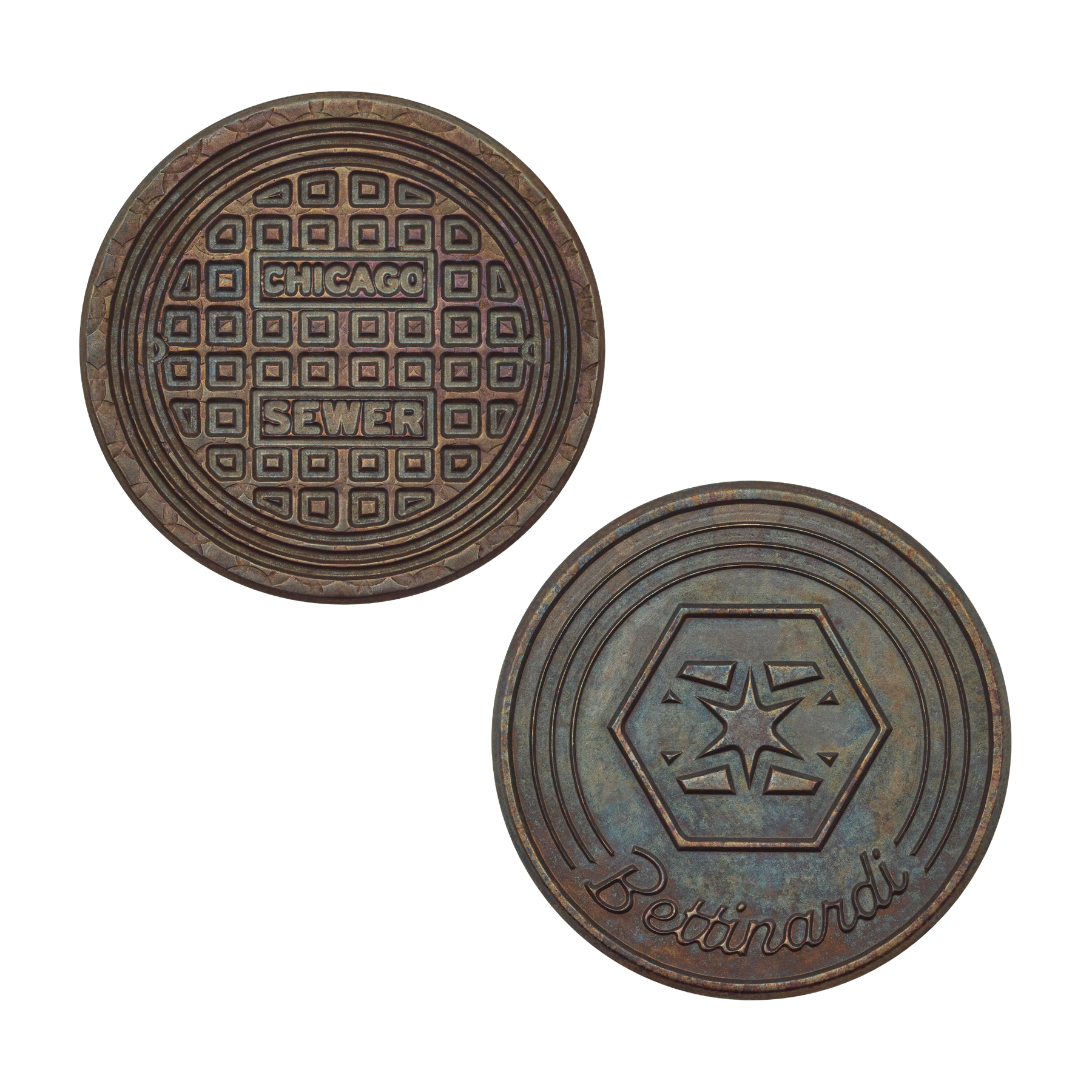 This Steel Patina ball marker was designed to look just like a Chicago sewer cover! The backside features a reverse milled Bettinardi wordmark and Chicago-inspired hex design.