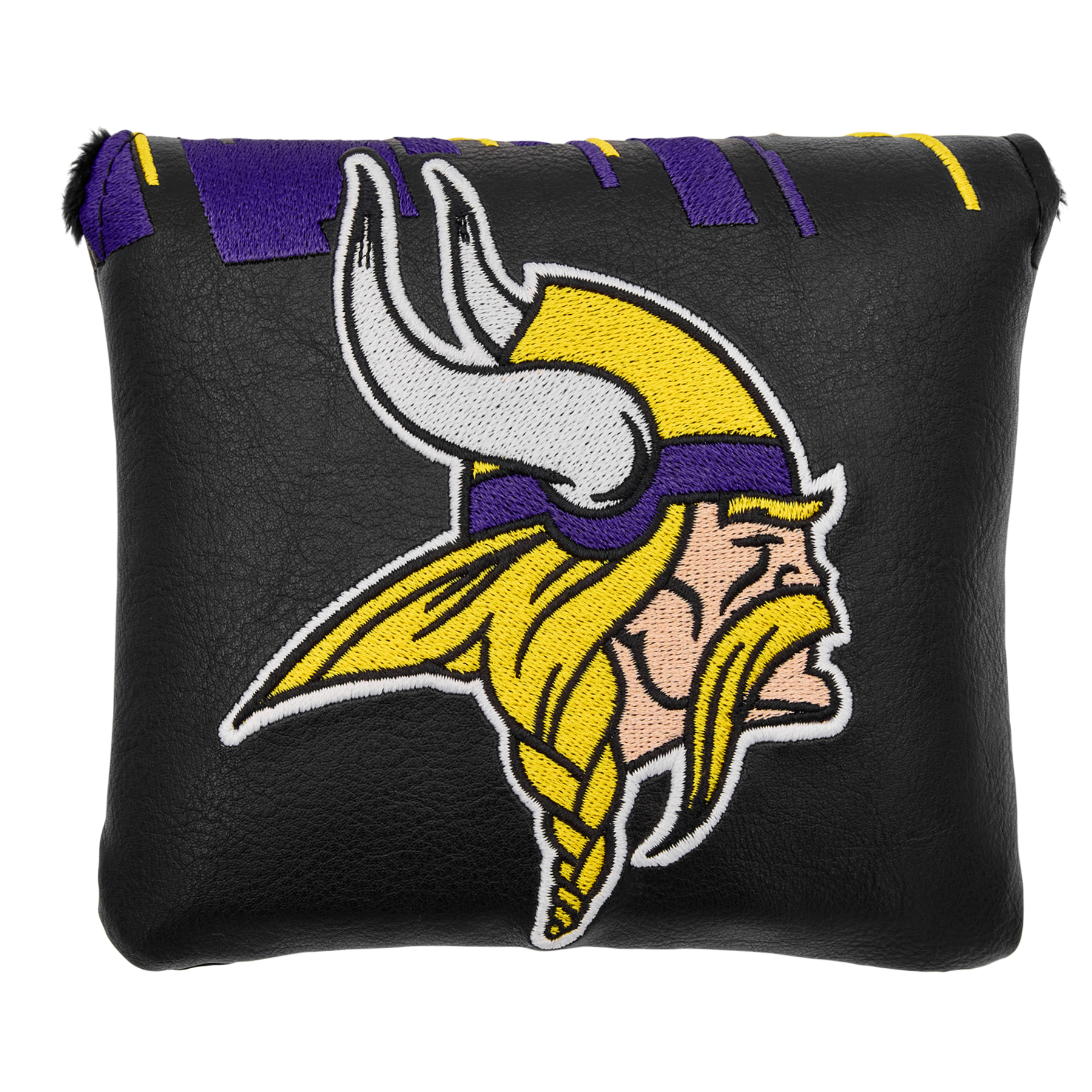 Go Vikings! Show off your Minnesota pride with this digital stripe mallet putter headcover featuring a limited colorway of black, purple and gold. Finished with the Minnesota Vikings primary mark on the front and black plush interior with a magnetic closure. Limited quantities available. Please allow 2-3 weeks for this item to ship.