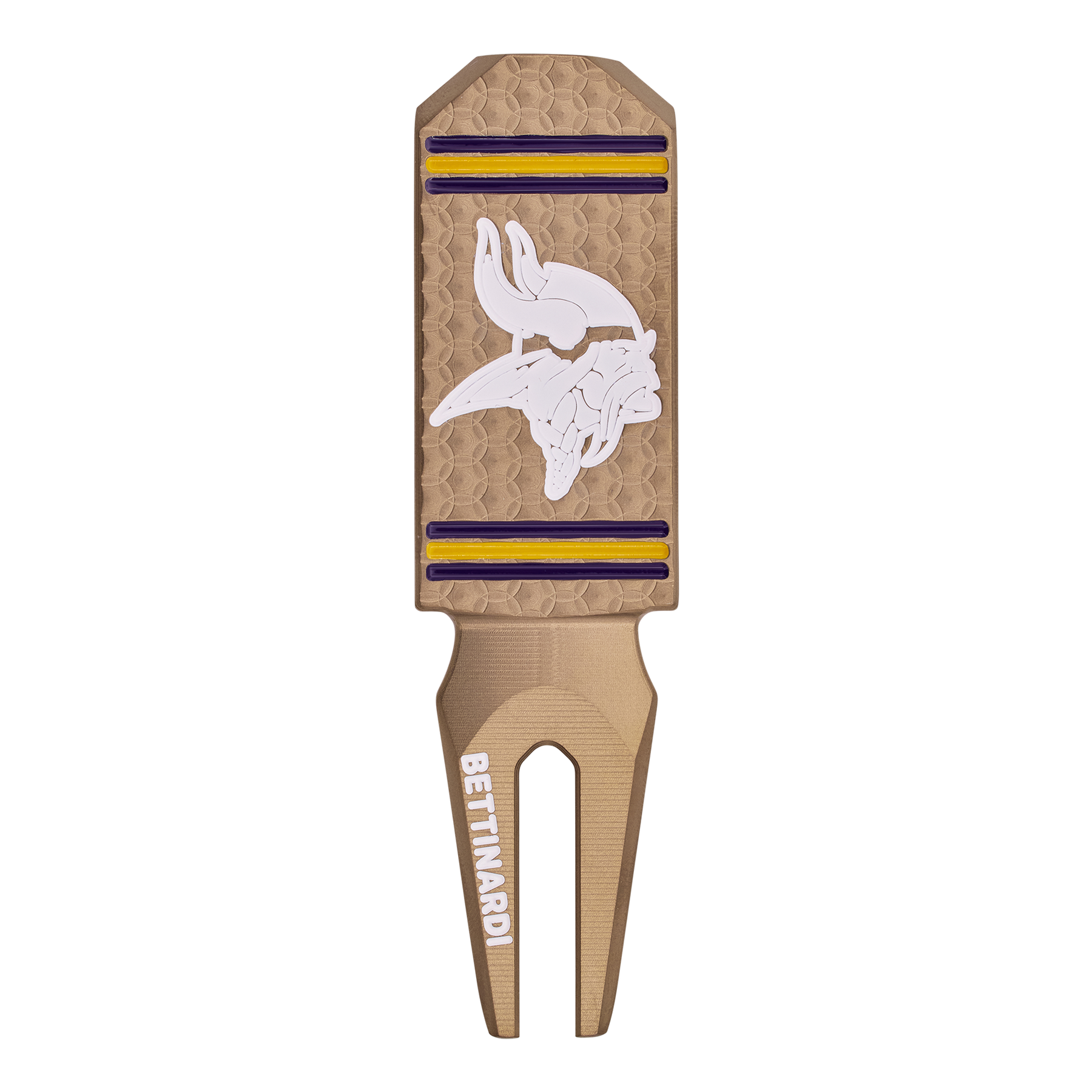 Go Vikings! This Gold Flame divot tool features the Minnesota Vikings logo milled over Micro Honeycomb™ on the front, with a Hex B on the backside above the thumb contour in purple and yellow paint fills. Limited quantities are available. Please allow 5 days for this item to ship.