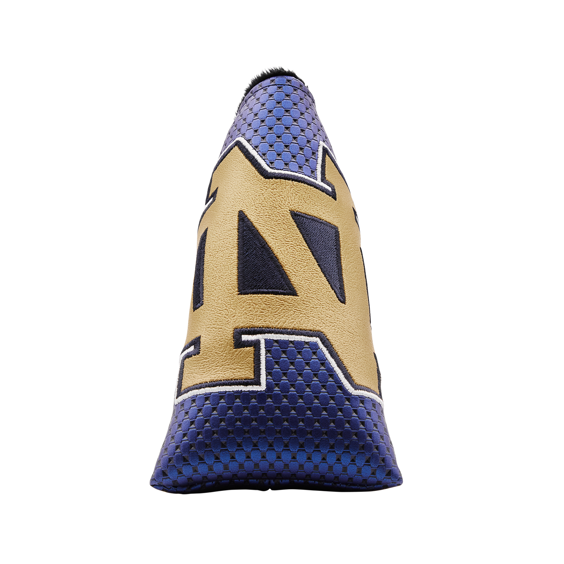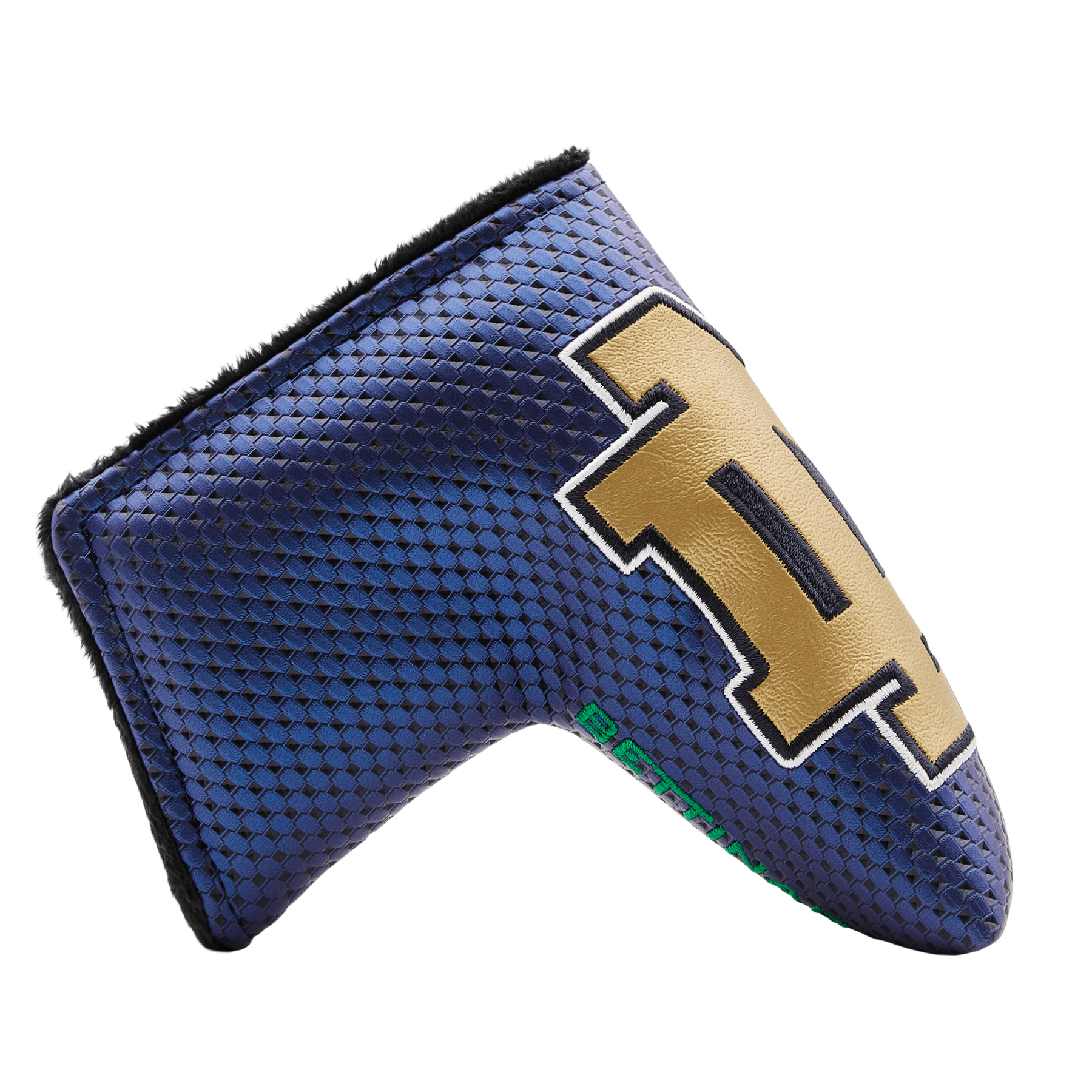 Fight On, Irish! Introducing the Bettinardi x Notre Dame BB8W Limited Putter, crafted from 303 Stainless Steel and featured in a striking Gold Flame finish. Weighing in at 342-grams, this masterpiece showcases Notre Dame engraved in the pocket and 'Go Irish' on the bumpers. The sole proudly displays 'Fightin' Irish' with clovers adorned above, and finished with green and navy paint fills. Comes completed with a navy Hex B Gripmaster perforated leather grip and matching ND blade putter headcover. Limited quantities are available. Good luck!