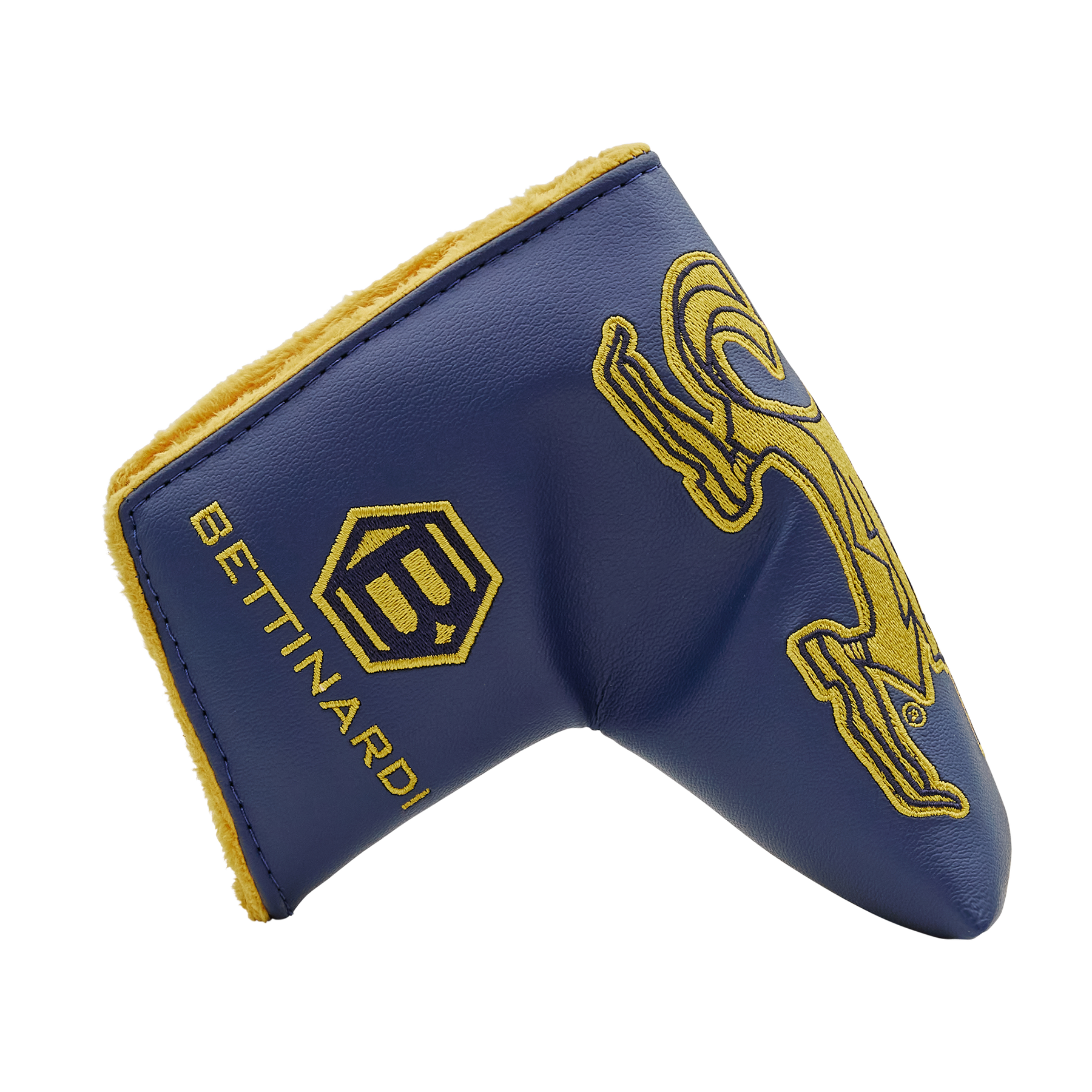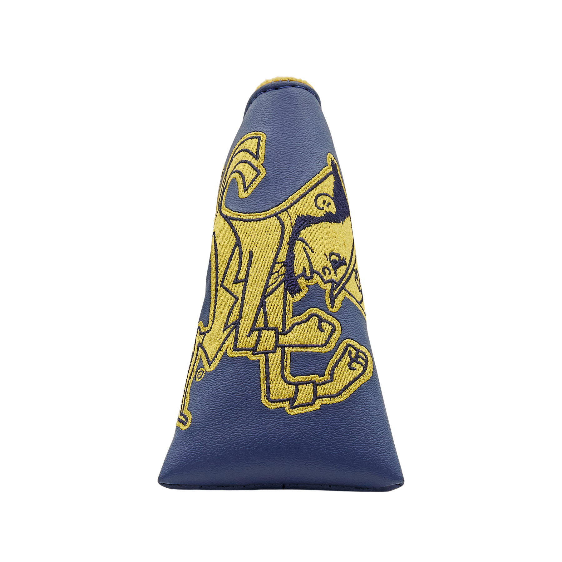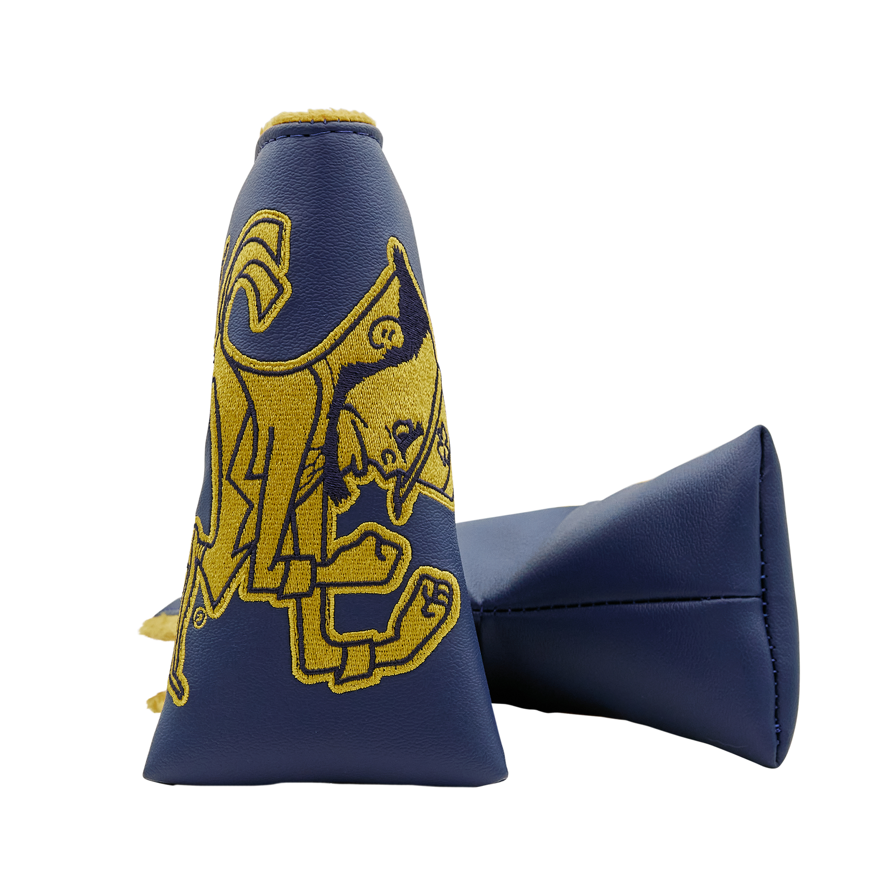 Show your Notre Dame pride with the Fighting Leprechaun Blade Putter Headcover. Designed on a navy base, this headcover features the iconic Fighting Leprechaun stitched on front. Finished with a gold plush interior and secured with a magnetic closure. Limited quantities available.