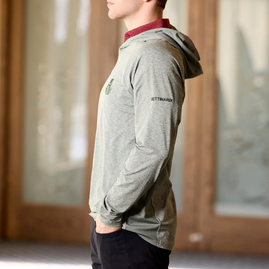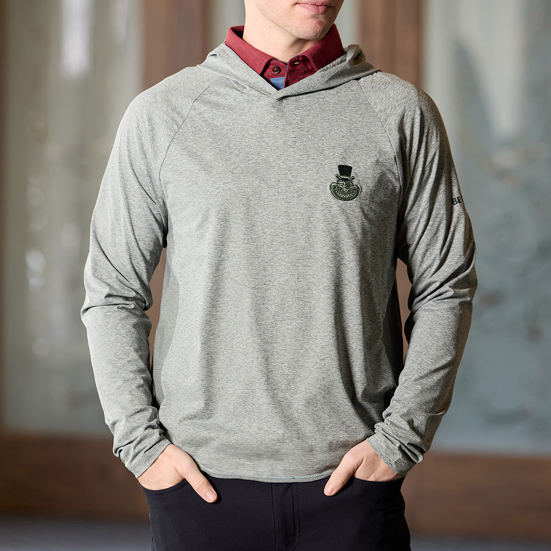 This hoodie is made in a heathered ivy shade, featuring the Gangster Fat Cat embroidered onto the left chest, and a matching Bettinardi wordmark on the left sleeve. Made by our friends at Holderness & Bourne, The Dunbar technical performance hoodie is engineered to keep up with your most active days. Innovative AIRATION® side panels provide advanced breathability, UPF 50+ sun protection, and stretch when you need it the most. Super soft and lightweight with modern styling and our signature fit. (79% polyester, 21% elastane)