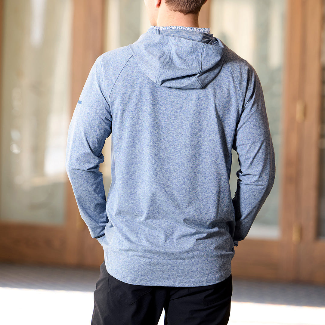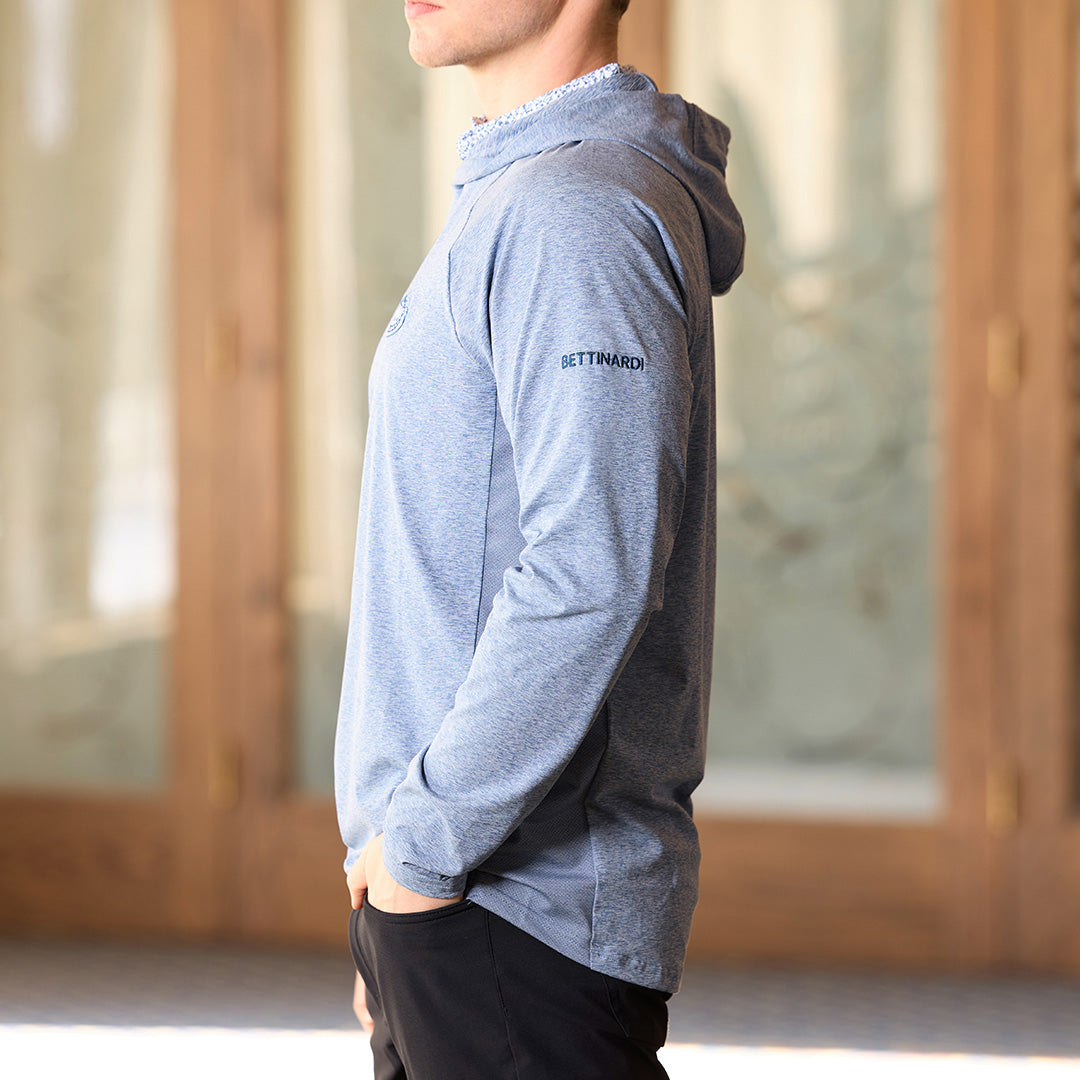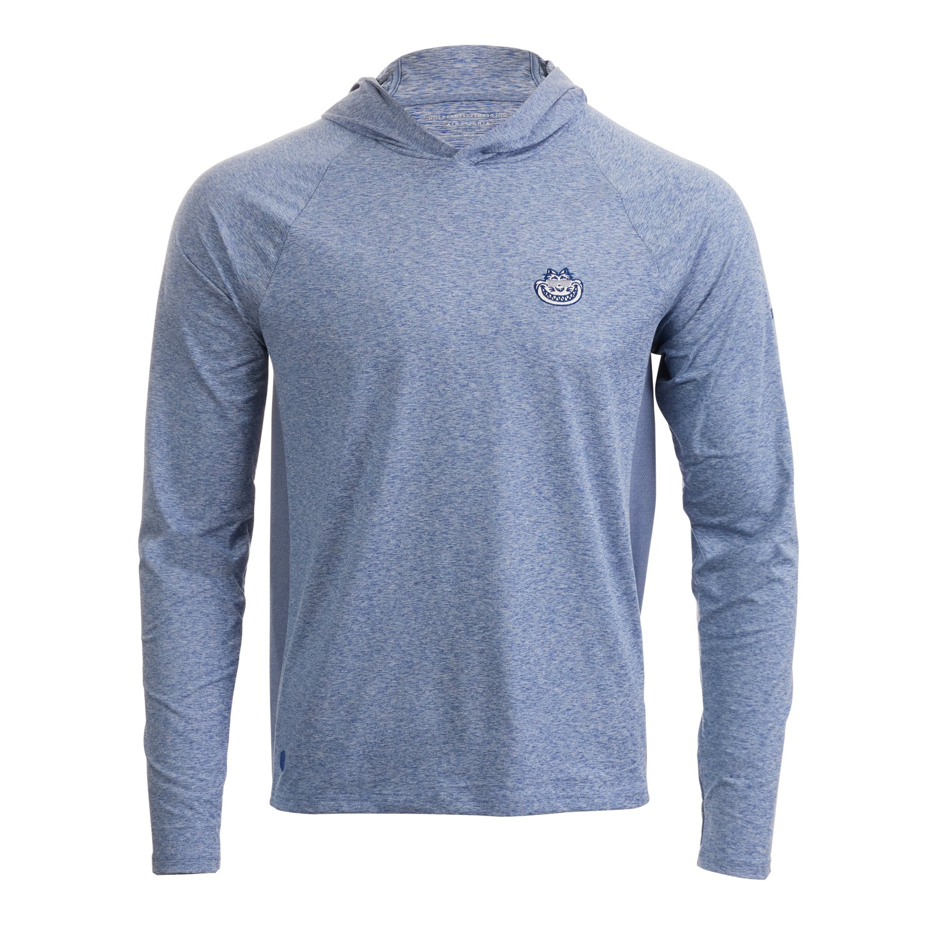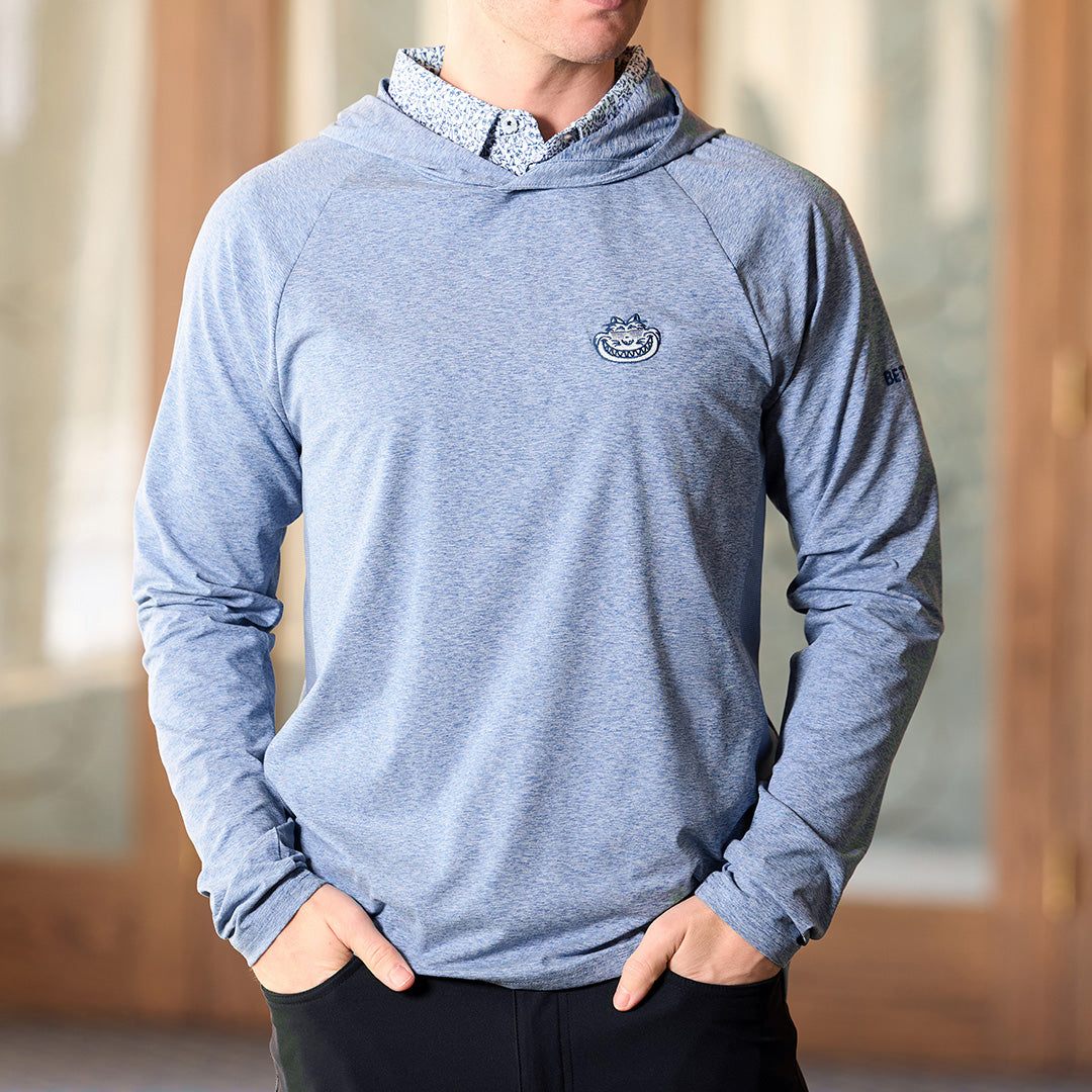 This hoodie is made in a heathered blue shade, featuring the Sunglasses Fat Cat embroidered onto the left chest, and a matching Bettinardi wordmark on the left sleeve. Made by our friends at Holderness & Bourne, The Dunbar technical performance hoodie is engineered to keep up with your most active days. Innovative AIRATION® side panels provide advanced breathability, UPF 50+ sun protection, and stretch when you need it the most. Super soft and lightweight with modern styling and our signature fit. (79% polyester, 21% elastane)