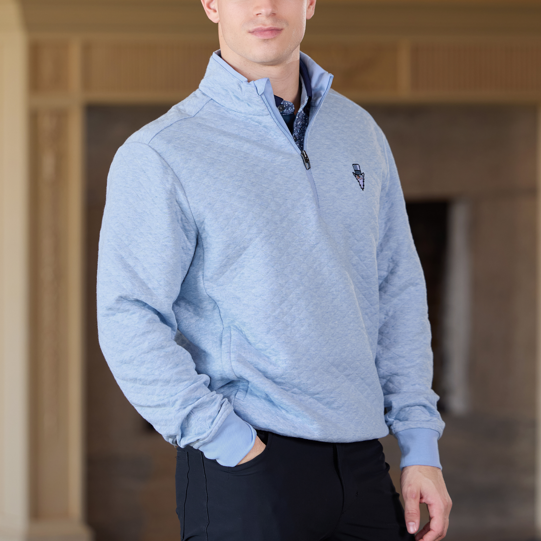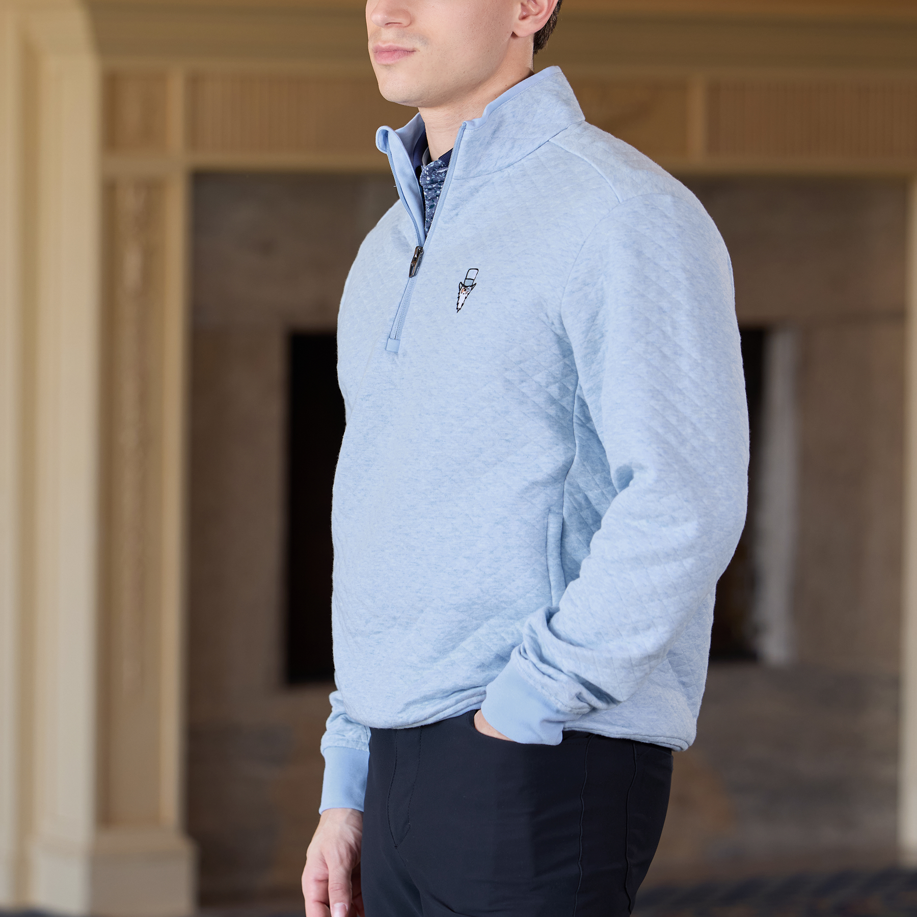 Designed by our friends at RLX to offer lightweight warmth, this pullover features a tonal Gangster Wizard on the left chest. Crafted with diamond-quilted double-knit fabric, it features side on-seam zipped pockets, a mockneck and a quarter-zip placket with a flap at the top to prevent chafing. This course-ready layer is designed for effortless, everyday wear. (71% polyester, 29% cotton (exclusive of trim))