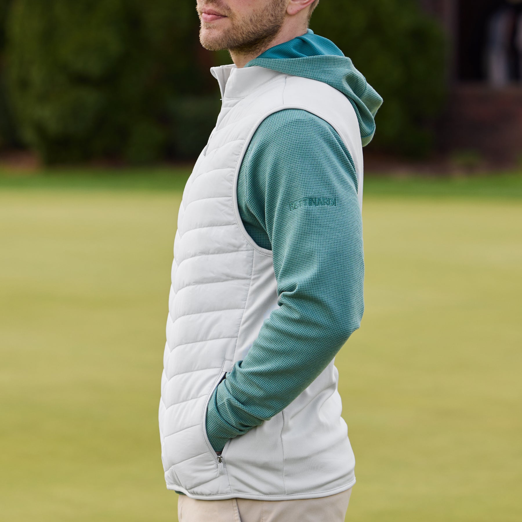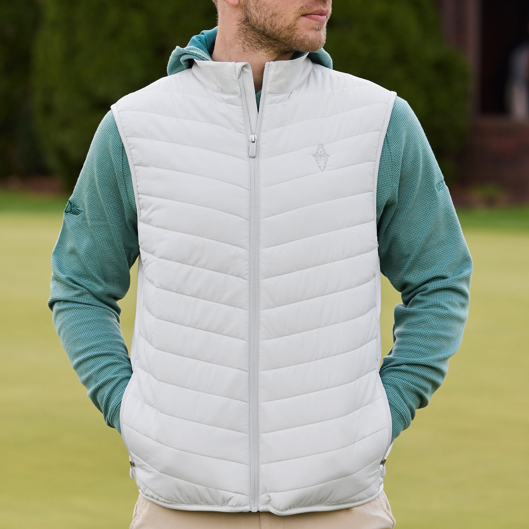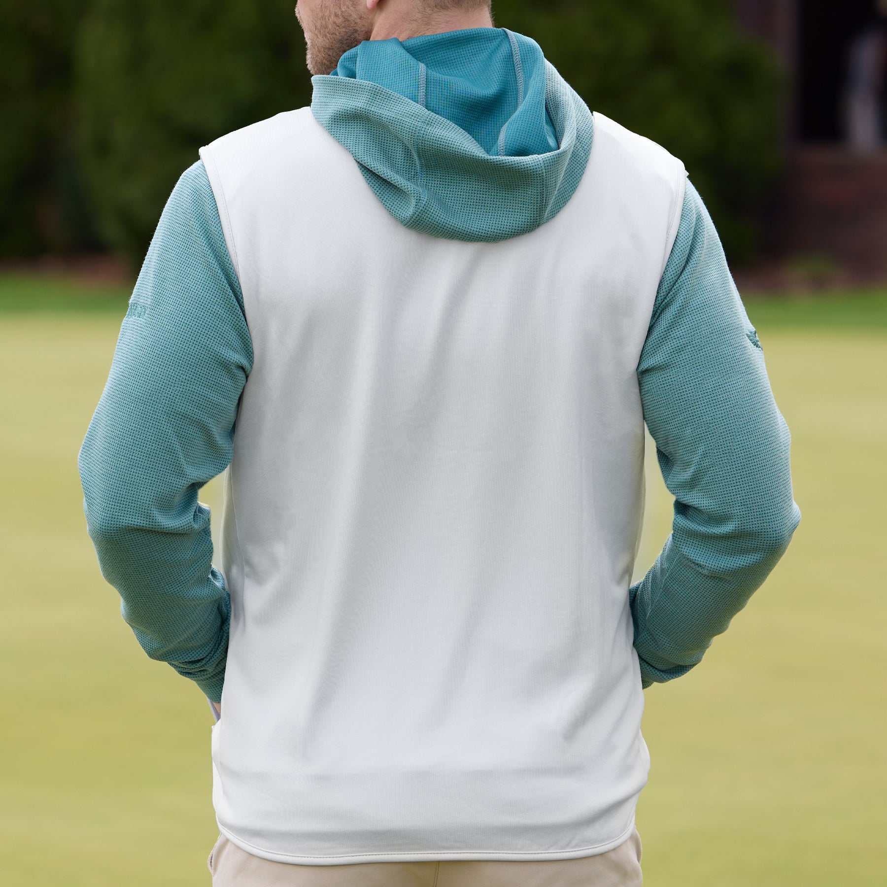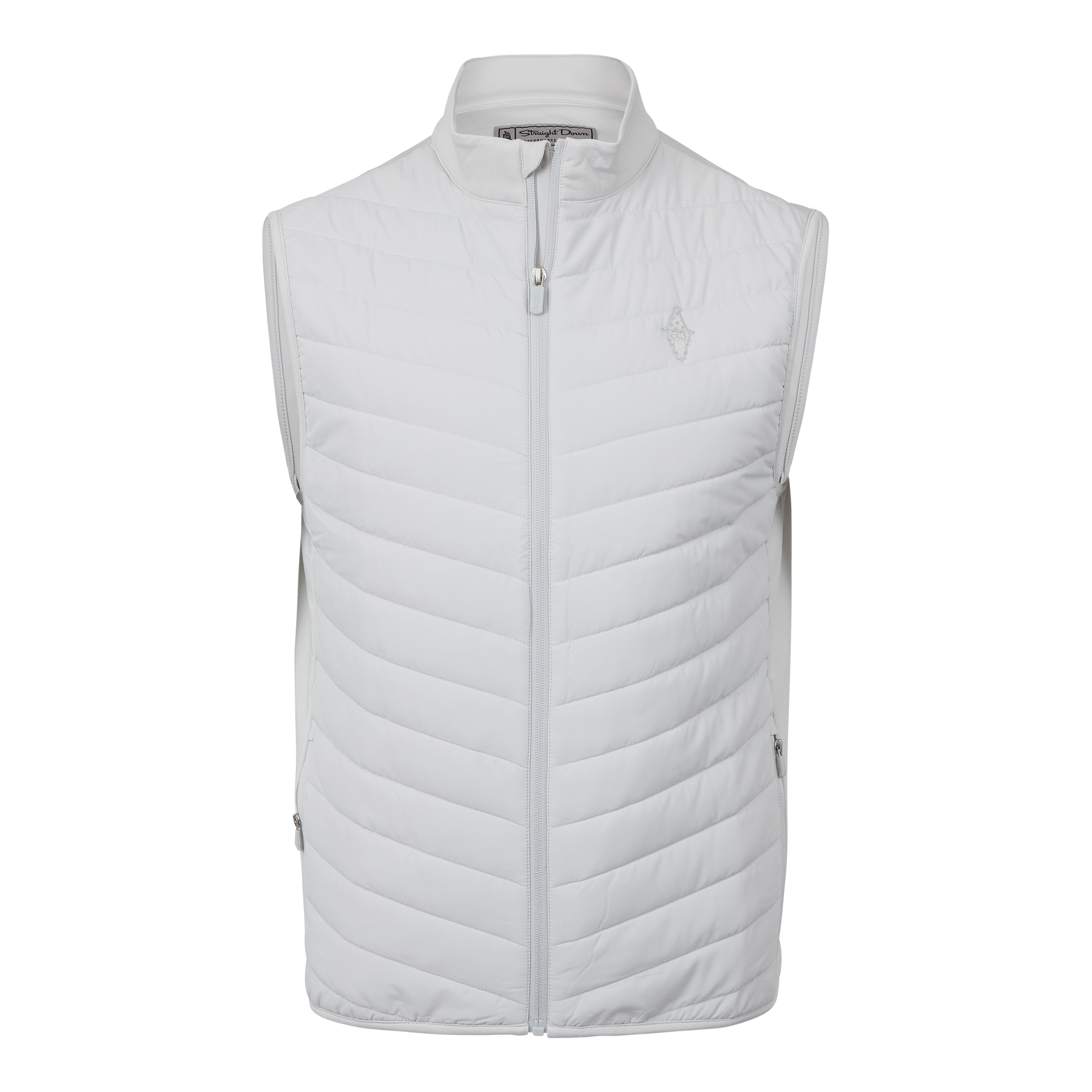 Our friends at Straight Down crafted this vest with a tonal Windy City Wizard on the left chest and a Bettinardi wordmark near the right pocket. The Delta 2.0 Quilted Hybrid Vest is designed with premium fabrics and a modern matte finish. A quilted woven front delivers lightweight warmth, while stretch brushed-knit side panels allow easy movement. Designed with a coil zipper and zippered hand pockets, this classic-fit layer offers clean style and reliable comfort. (100% polyester woven, 92% polyester, 8% spandex)