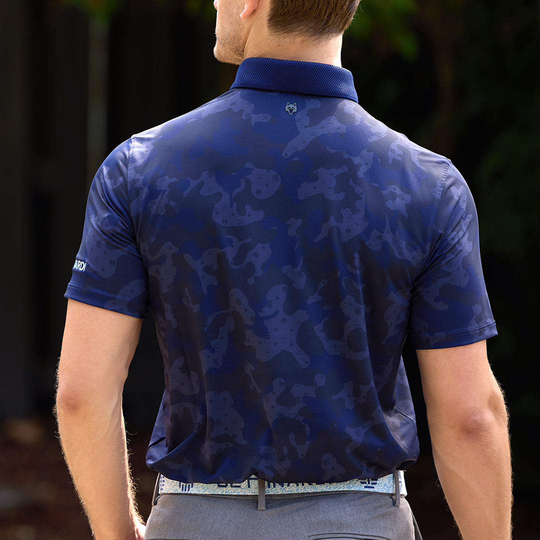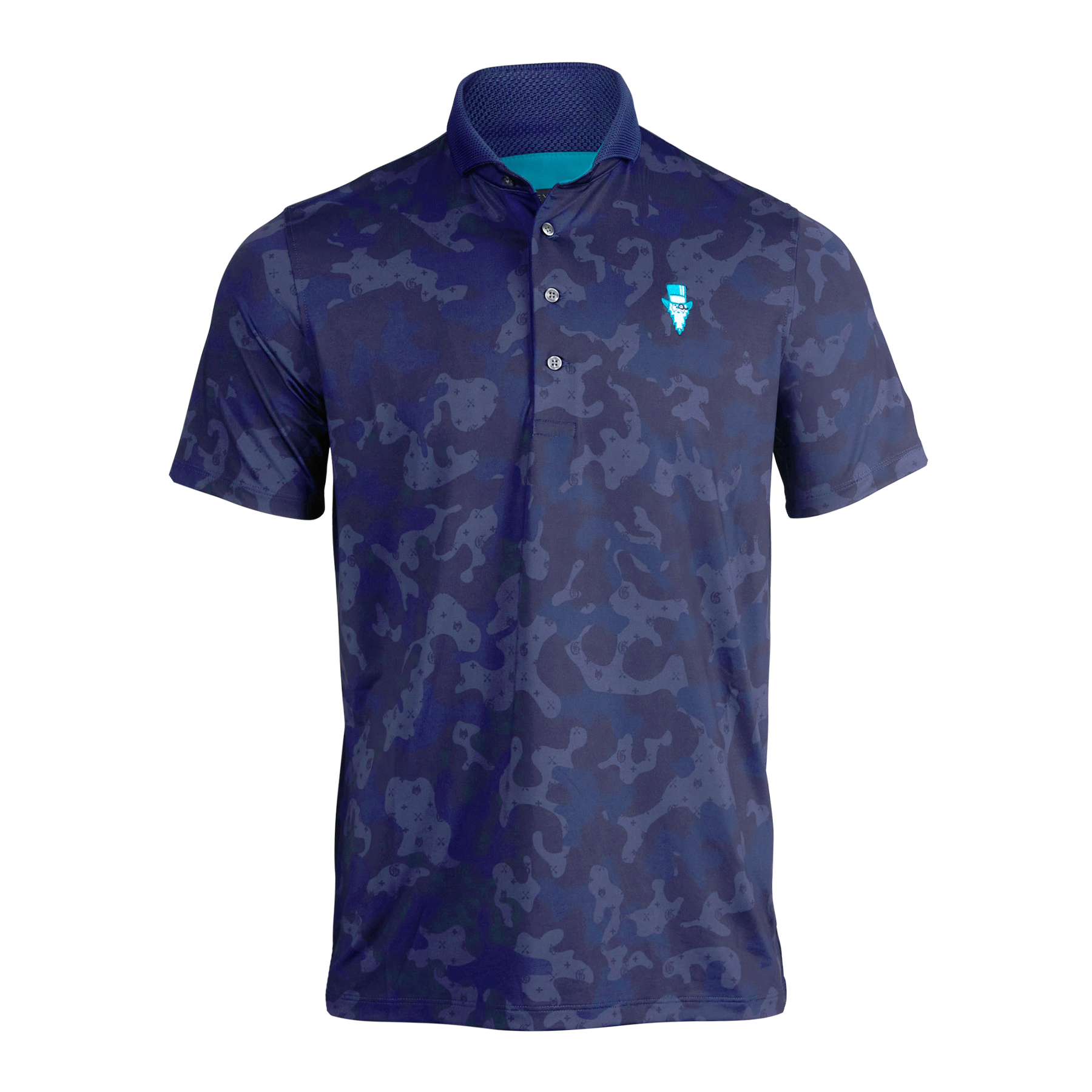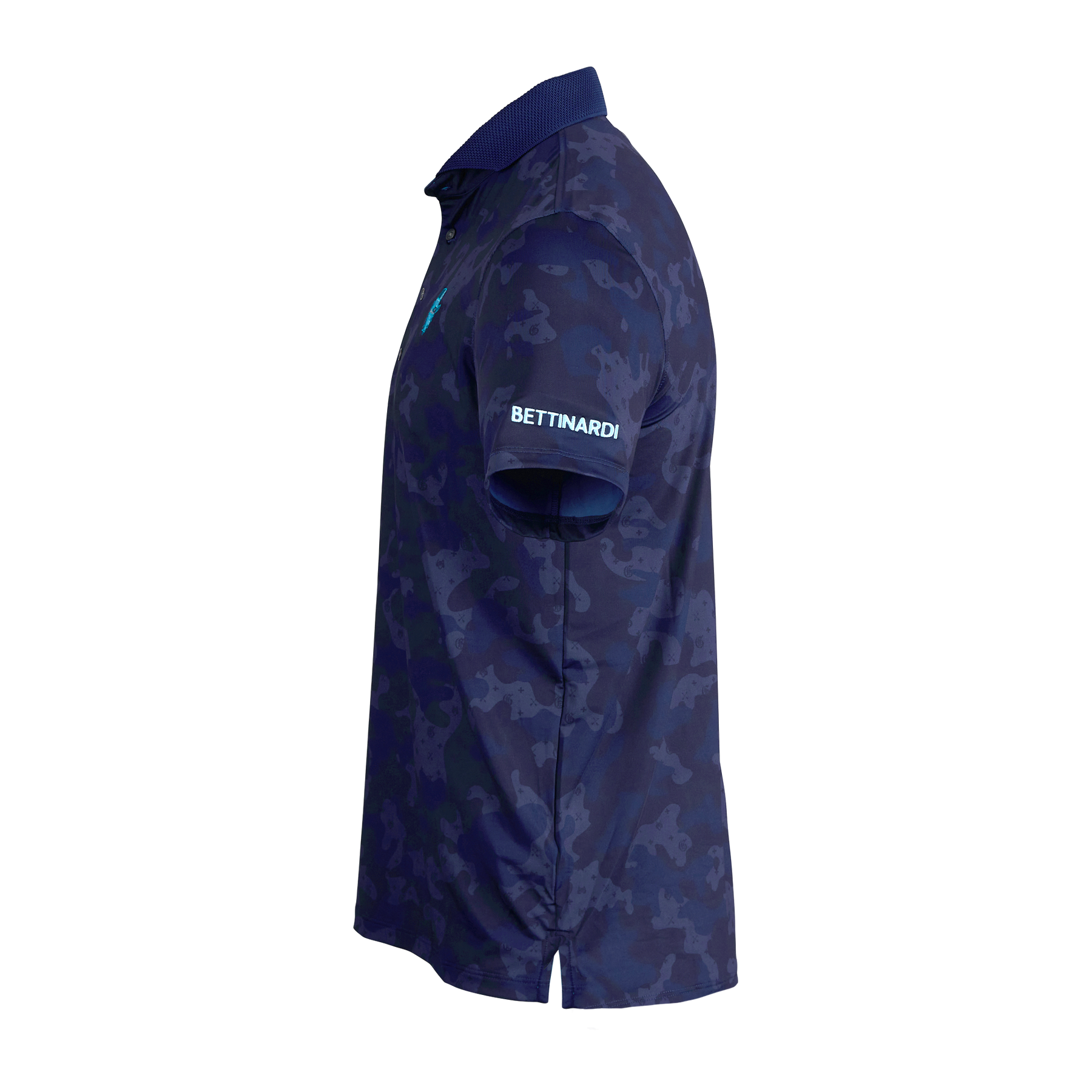 The Gangster Wizard G.O.A.T. Camo Polo reimagines the classic camouflage pattern, featured on luxurious fabric for a refined, modern look. Showcasing a Gangster Wizard on the left chest and Bettinardi on the left sleeve and designed with breathability, quick-drying, and four-way stretch, this performance printed polo moves with you throughout the day. The four-button placket, contrast details under and on top of the placket, and a jacquard knit collar elevate the style. (90% Recycled Polyester, 10% Spandex)