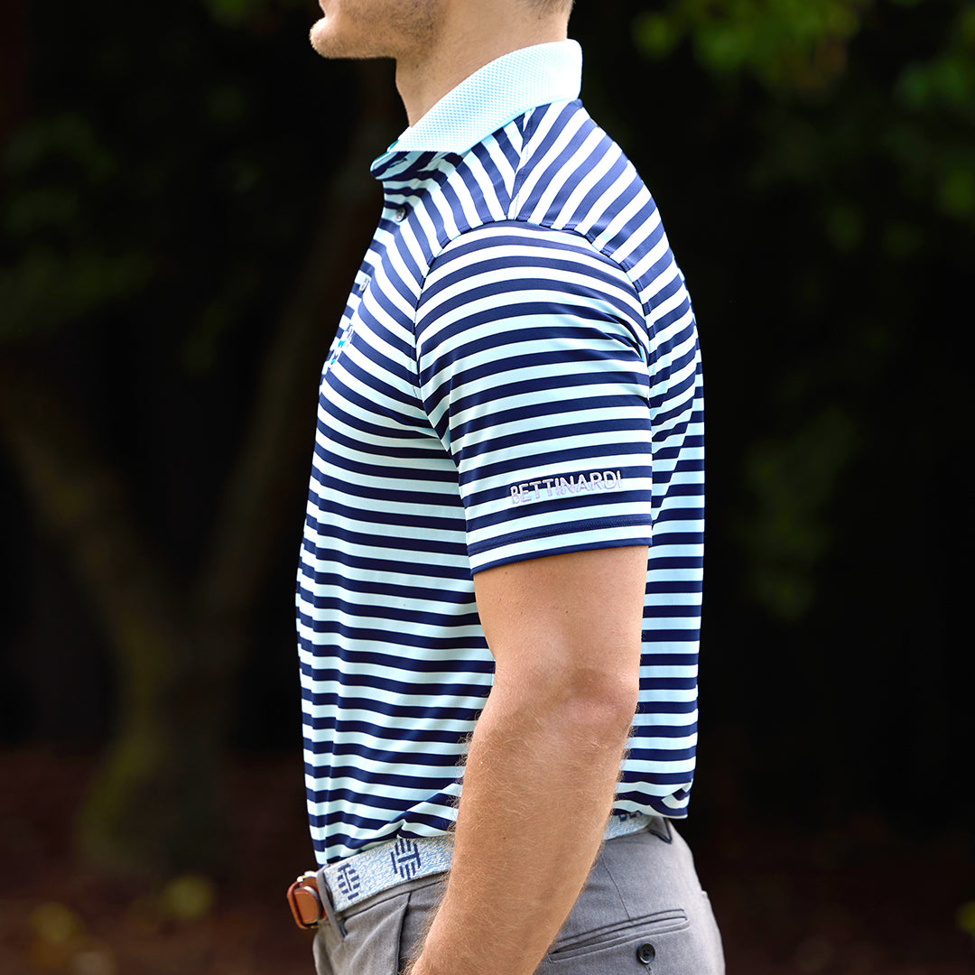 Inspired by legendary explorer Everett Ruess, the Greyson Ruess Polo in Viper/Maltese Blue is built for the golfer with an adventurous spirit. Merging classic styling with modern performance, this polo is crafted from a premium poly-blend fabric that delivers a soft, breathable feel with high-tech functionality. Whether you’re exploring new courses or pushing limits on familiar fairways, the Ruess Polo is designed to support you in any condition. (90% Polyester, 10% Spandex)