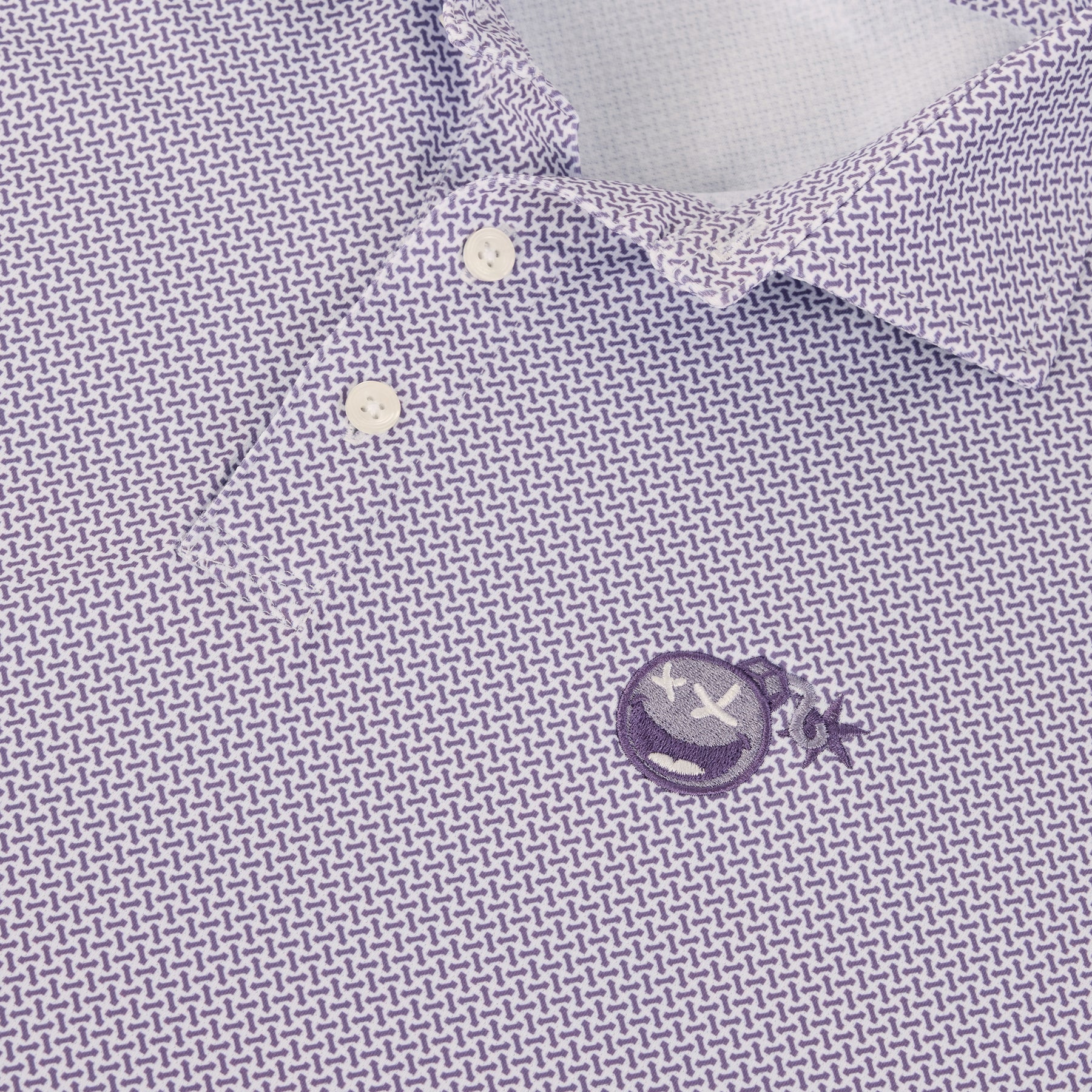 A unique new geometric pattern makes The Poison Bomb Hackett Polo a go-to style on the course and everywhere else. Crafted with a Poison Bomb on the left chest and Bettinardi on the left sleeve, a distinctive structured spread collar and H&B signature fit. The exclusive AIRATION® fabric's perforated knit construction provides exceptional softness and breathability, along with moisture wicking, 4-way stretch, and UPF 50+ sun protection. (85% Polyester, 15% Elastane)