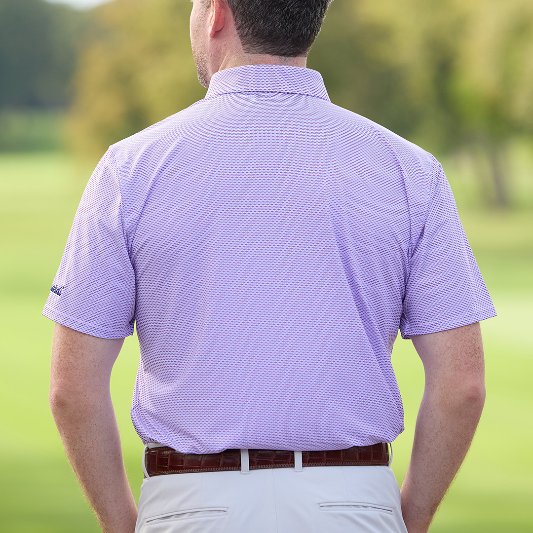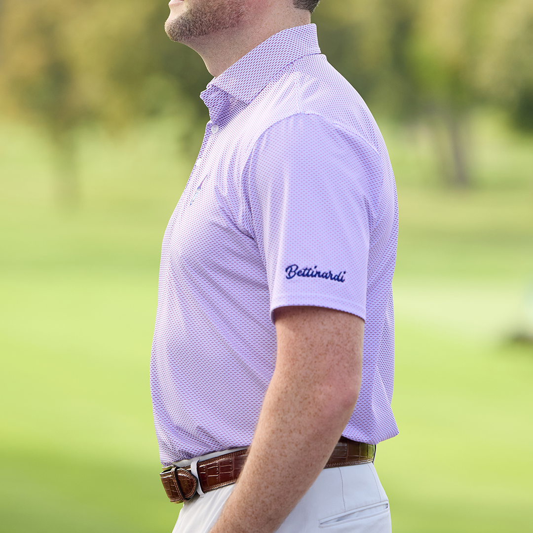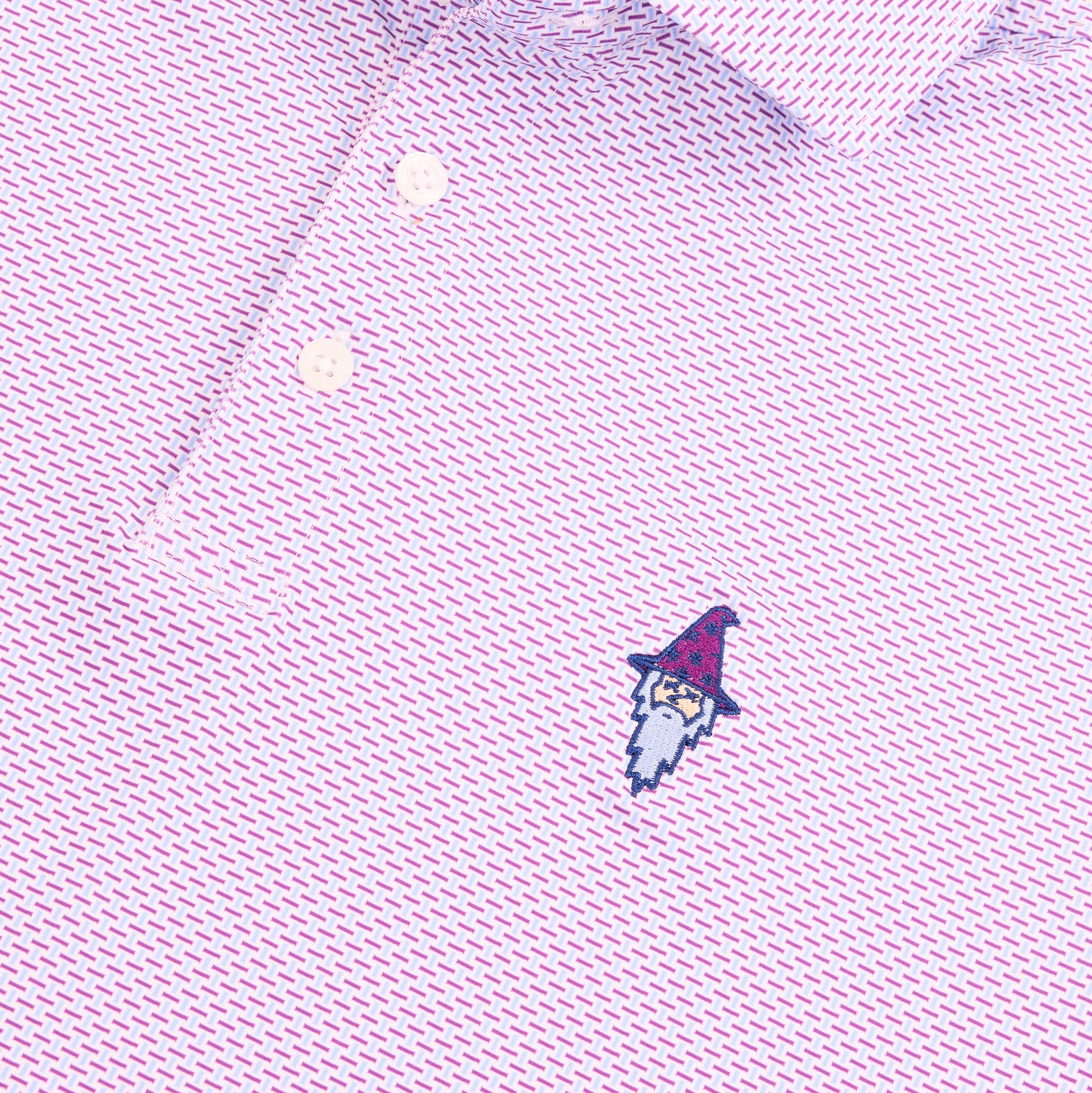 The Poison Wizard Davis polo features our Poison Wizard on the left chest and Bettinardi on the left sleeve set against a unique geometric pattern with a versatile white base, overlaid on our DryLuxe performance fabric. Finished with a distinctive spread collar and H&B signature fit. (88% Polyester, 12% Elastane)
