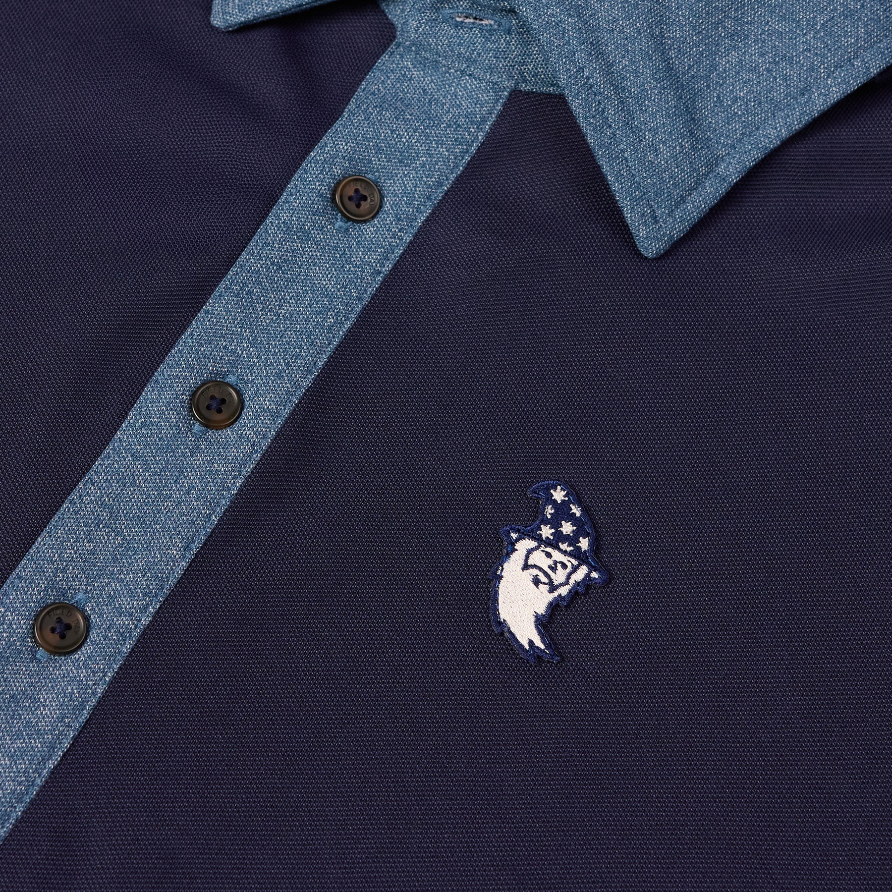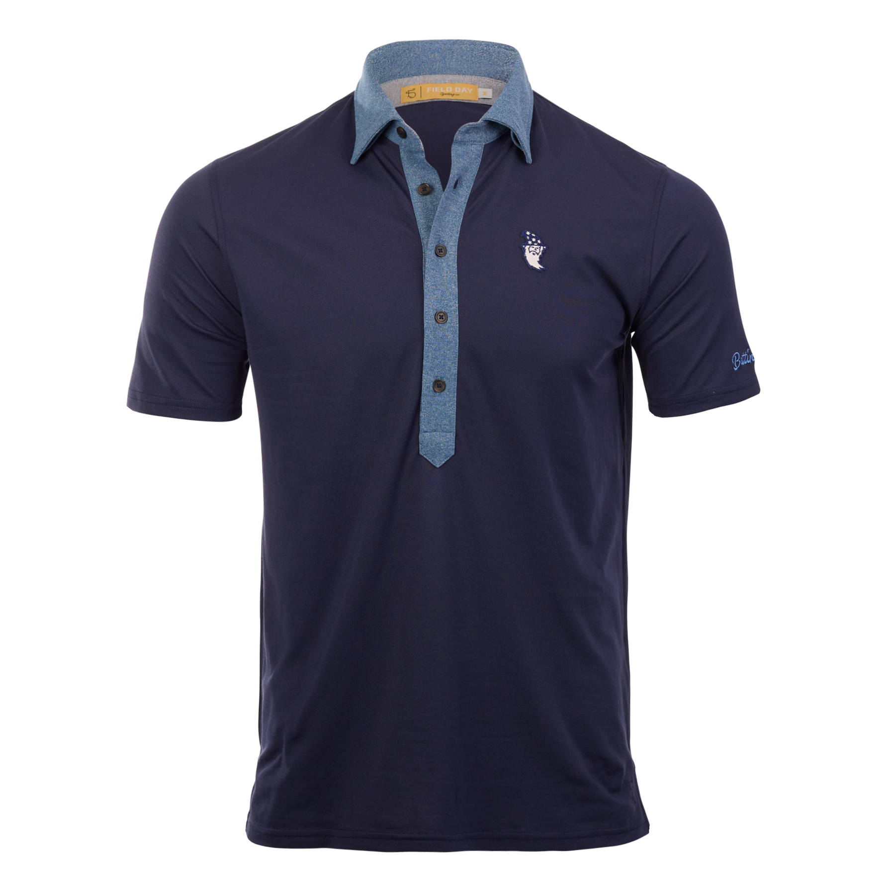 Inspired by 1940s sportswear, the Wizard Runboy Ford 5 Button Heather Polo blends timeless sophistication with modern performance. Showcasing our Wizard Runboy on the left chest and Bettinardi on the left sleeve this polo is crafted from a heathered pique fabric, it features an elongated top-applied placket, tortoise shell buttons, and a self-contrast collar and placket for elevated detail. Designed with a signature FD Button-Stay Collar and grosgrain loop at the back neck. (52% Recycled Polyester, 44% Pima Cotton, 4% Spandex)