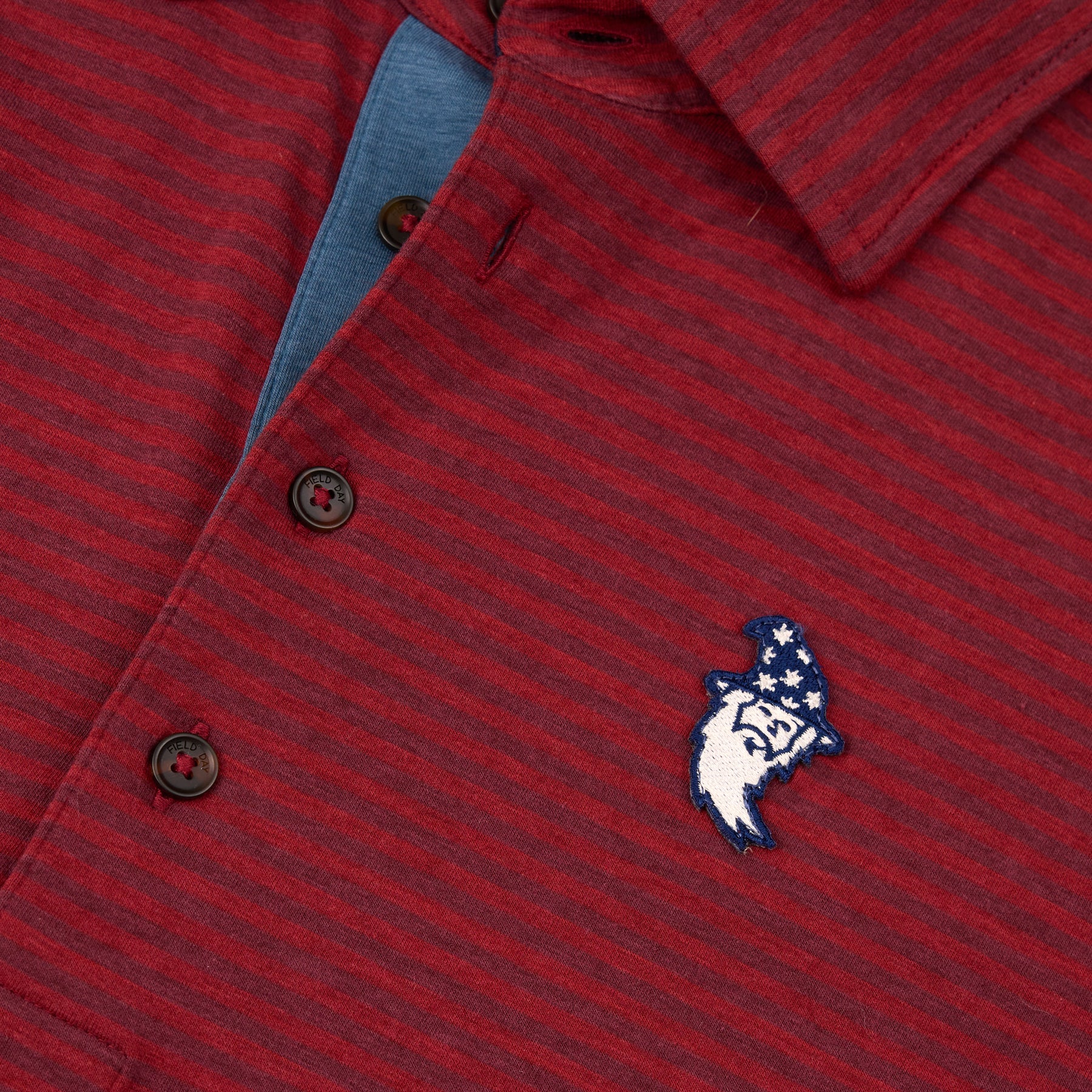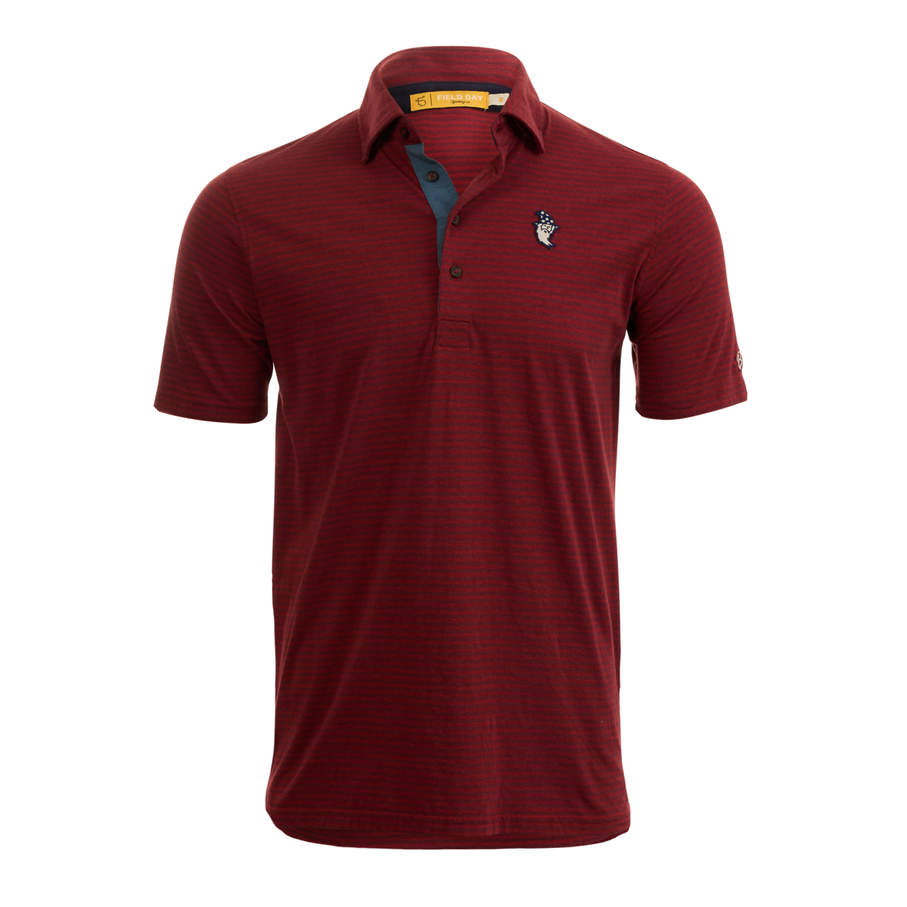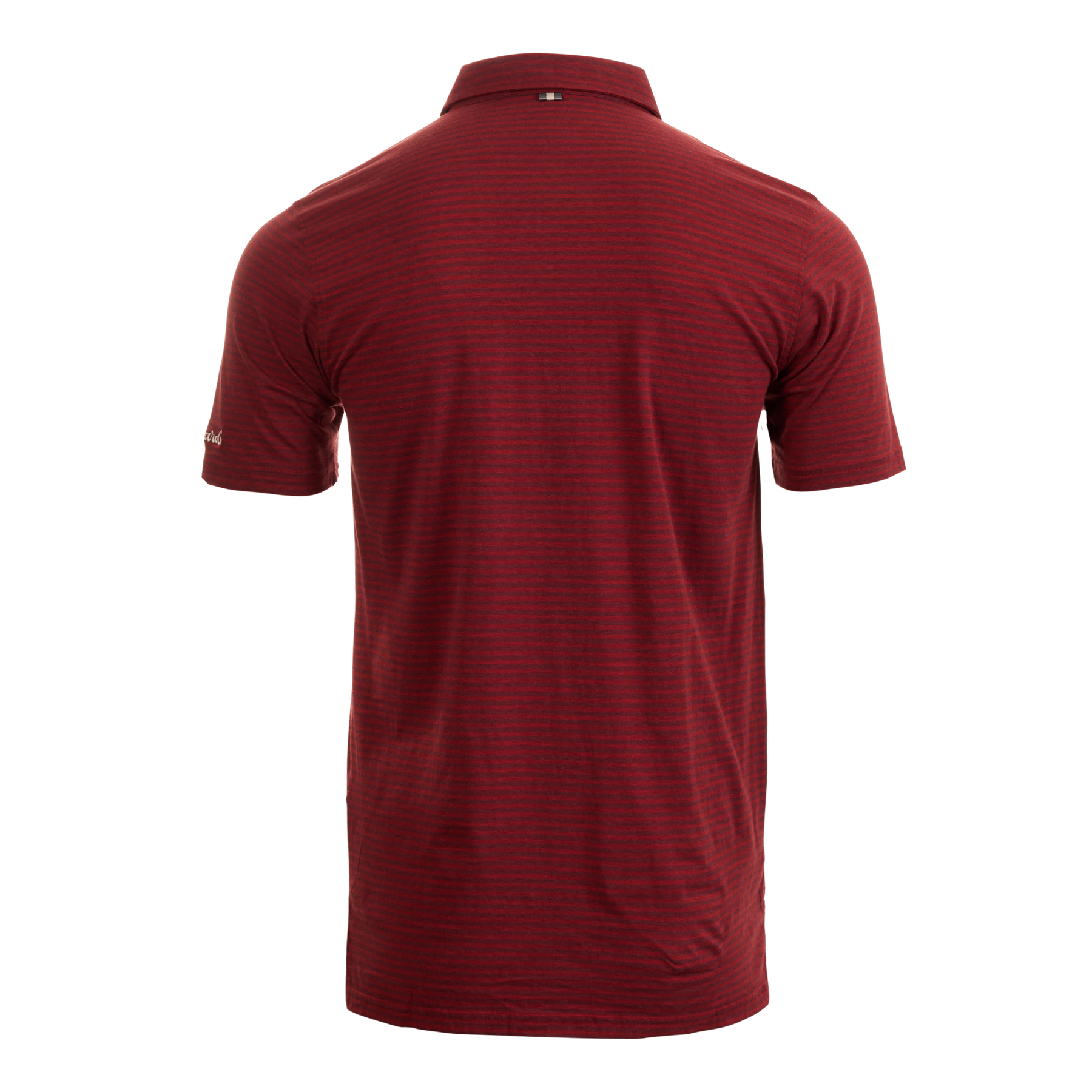 This red-striped, John 4 Button Polo was inspired by 1940's sportswear and features a Wizard Runboy embroidered onto the left chest, and a Bettinardi wordmark on the left sleeve. This subtly sophisticated print and style is an essential for your wardrobe. Designed with modern fabrication that works, but the attitude, and class of the past. (58% Pima cotton, 39% nylon, 3% spandex)