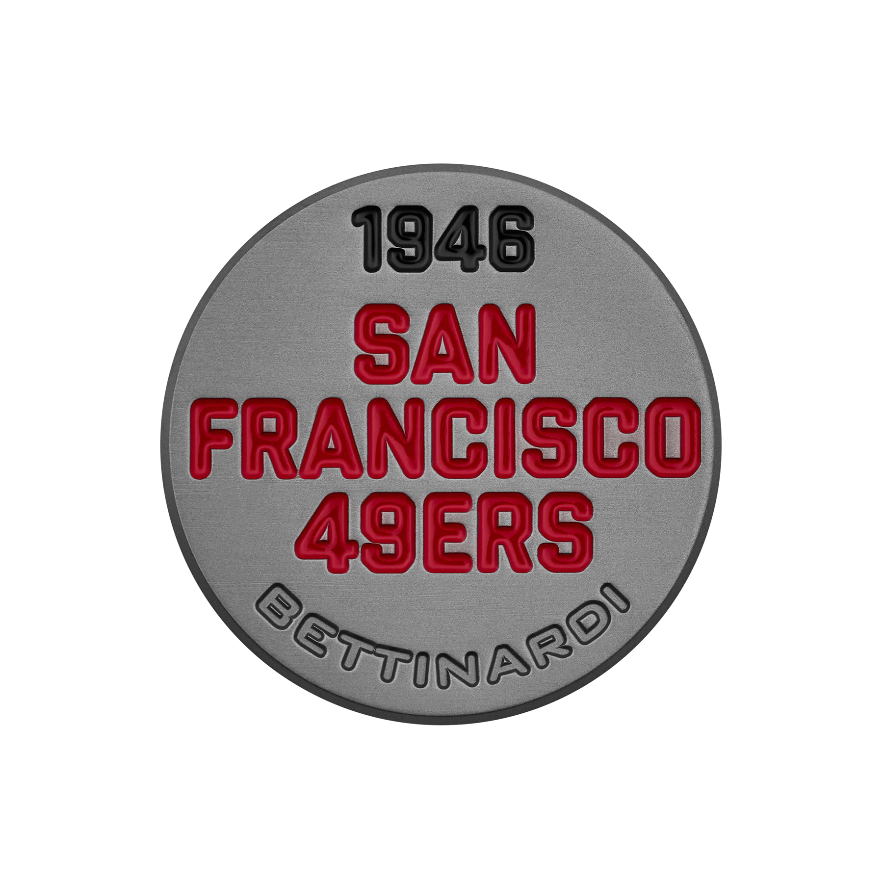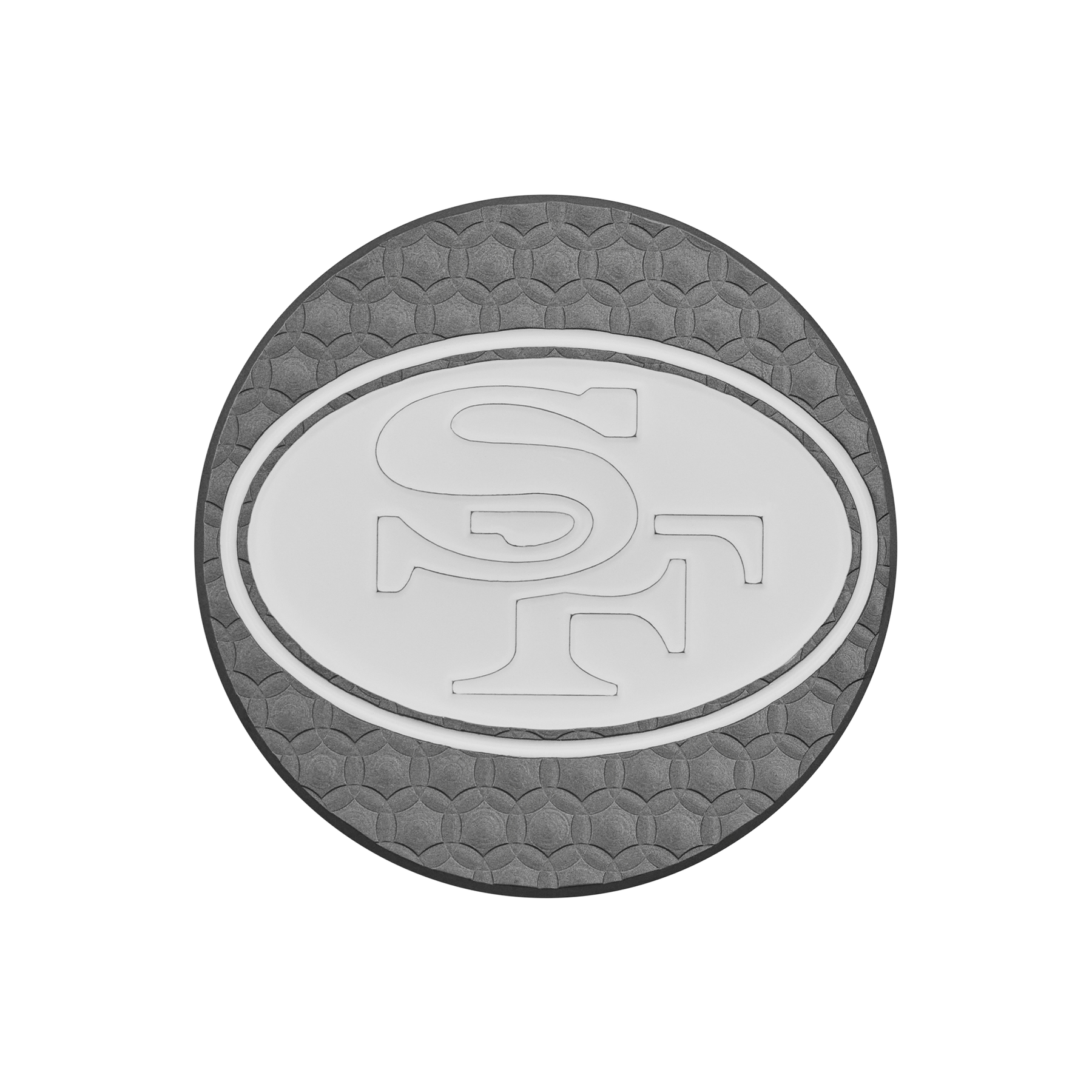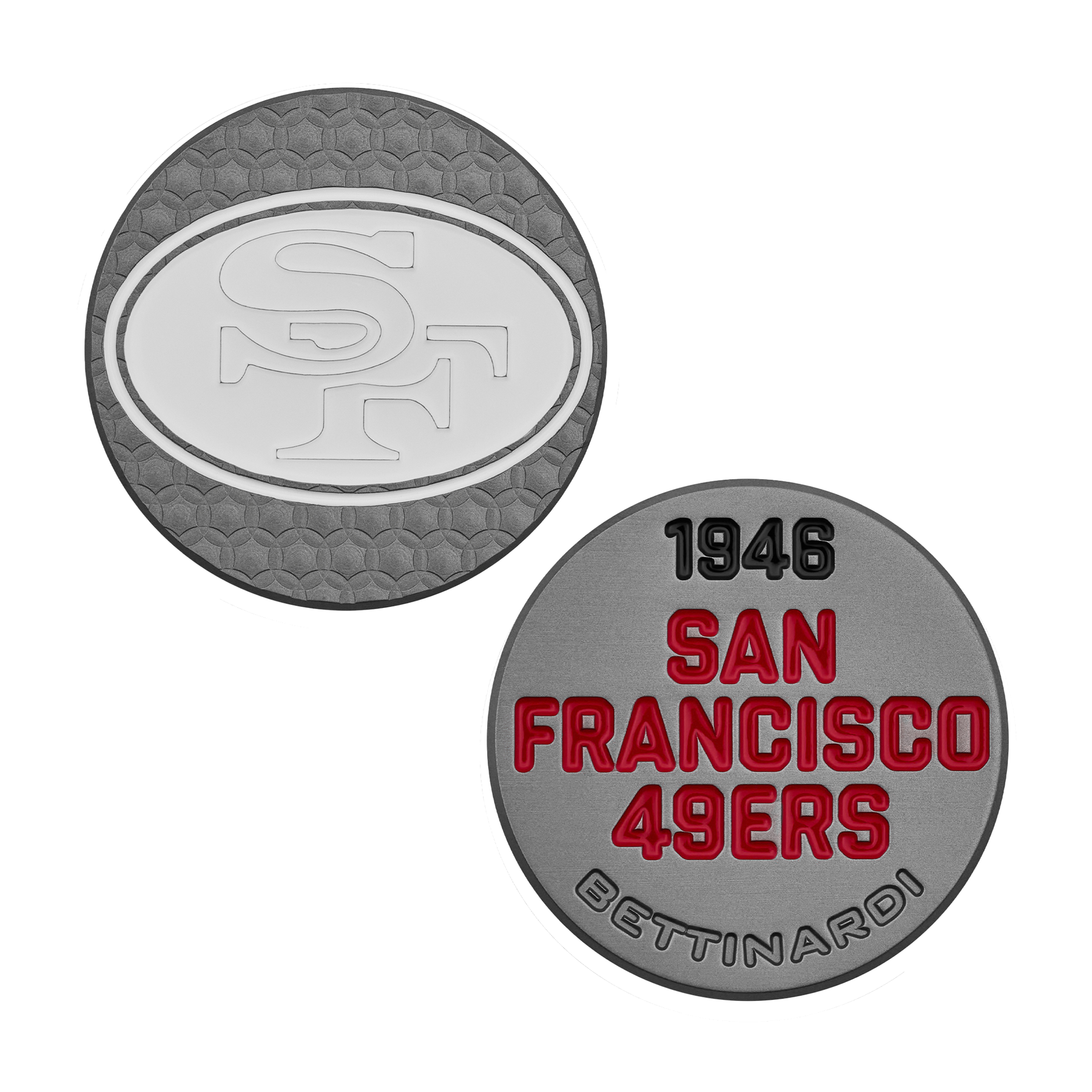This throwback Black Ox ball marker features the San Francisco 49ers classic mark on the front, with the San Francisco 49ers wordmark milled into the backside with red and black paint fills over a Micro Honeycomb™ base. Limited quantities are available. Please allow 5 days for this item to ship.