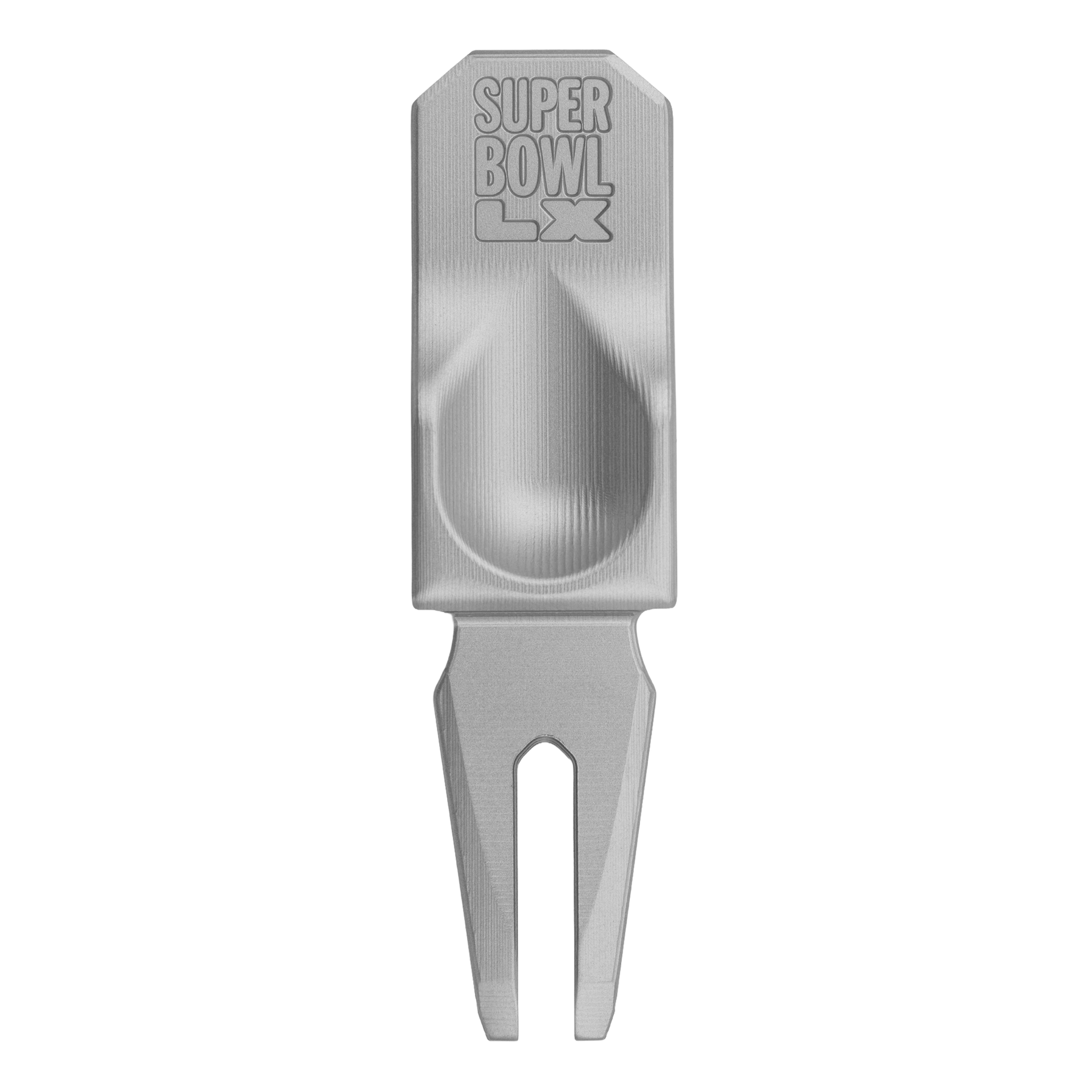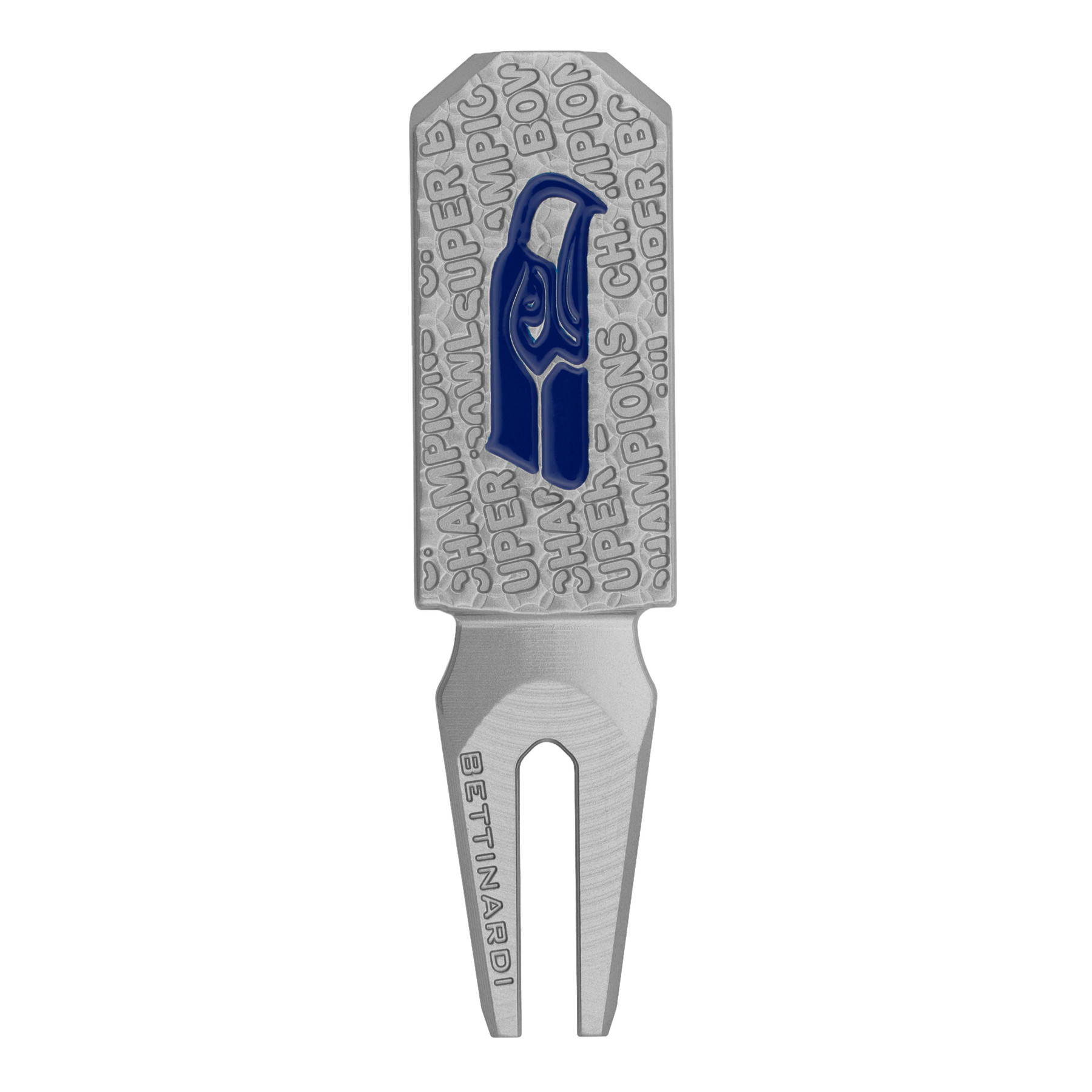 Go Hawks! This commemorative divot tool features the Seattle Seahawks logo over a repeating "SUPER BOWL CHAMPIONS" pattern on the front, and a Super Bowl LX wordmark engraved over the thumb contour on the reverse. Finished with Diamond Blast and navy paintfill. Available for a limited time only. This item is a pre-order and will ship between 3-5 weeks. All sales final.*