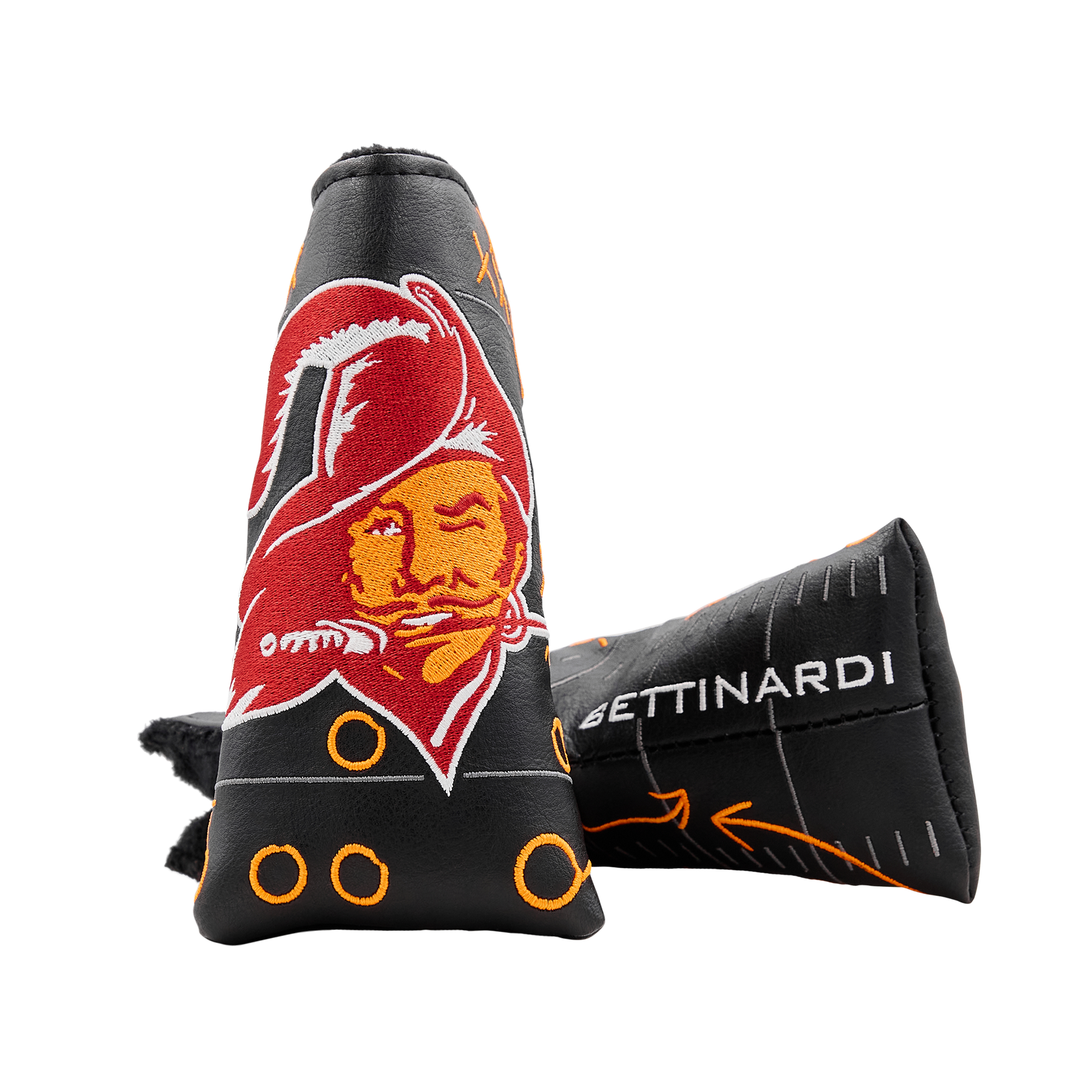 This throwback Tampa Bay Buccaneers Studio Stock 28 Putter is finished in Diamond Blast with red, orange, black, and white paintfills and features the Tampa Bay Buccaneers classic mark with team slogans on the sole. Milled from 303SS, it boasts a single sightline alignment and a Flymill face for a firm, yet responsive feel. The face of the putter is adorned with the Hex B on the heel, and in the pocket, you’ll find the Tampa Bay Buccaneers wordmark. Elevate your game with this limited run putter that combines Bettinardi’s world-renowned design and precision milling with Tampa Bay Buccaneers pride. Comes completed with a black and gray Bettinardi Hex B standard grip and Tampa Bay Buccaneers X's and O's Classic Mark Blade Putter Headcover. Limited quantities are available.