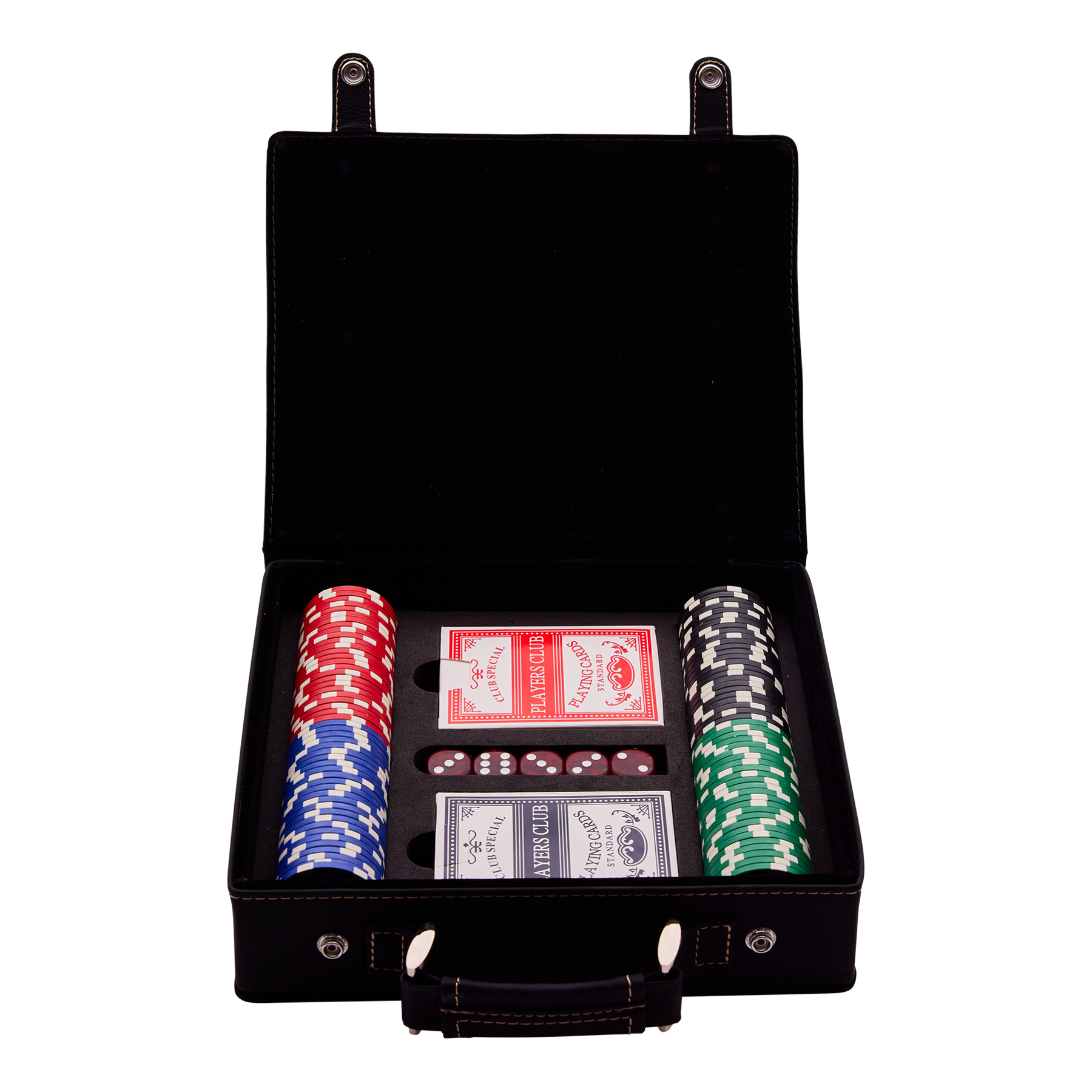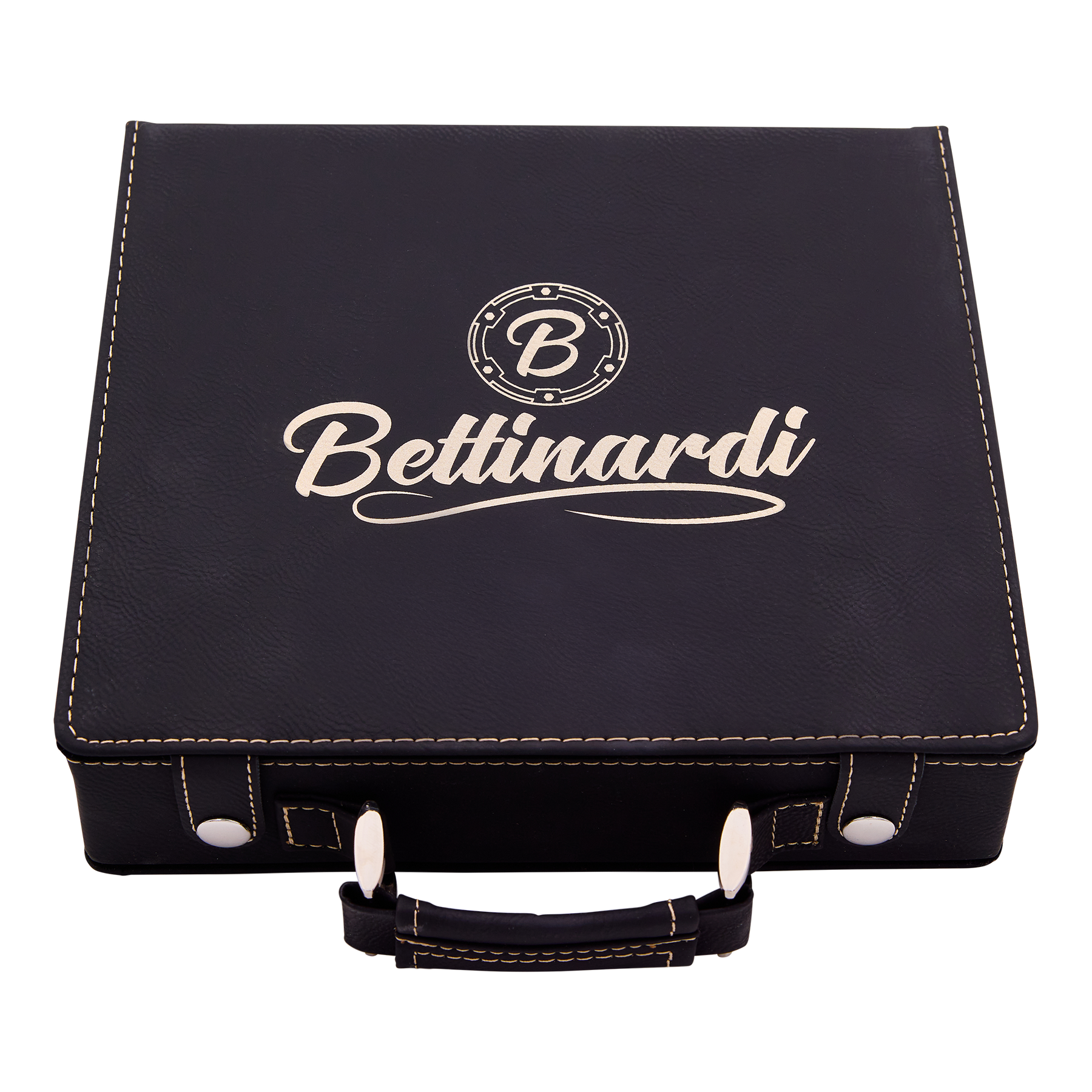 Made by our friends at Sterling, The Doyle Poker Set brings timeless sophistication to game night. Inspired by classic high-roller style, this sleek black leather case features our Bettinardi wordmark laser engraved in gold. Inside, you’ll find premium weighted chips, dual decks of playing cards, and dice. Whether you’re playing for fun or fortune, the Doyle Poker Set sets the stage for unforgettable hands and bold bets. (8.875" L x 7.75"H)
