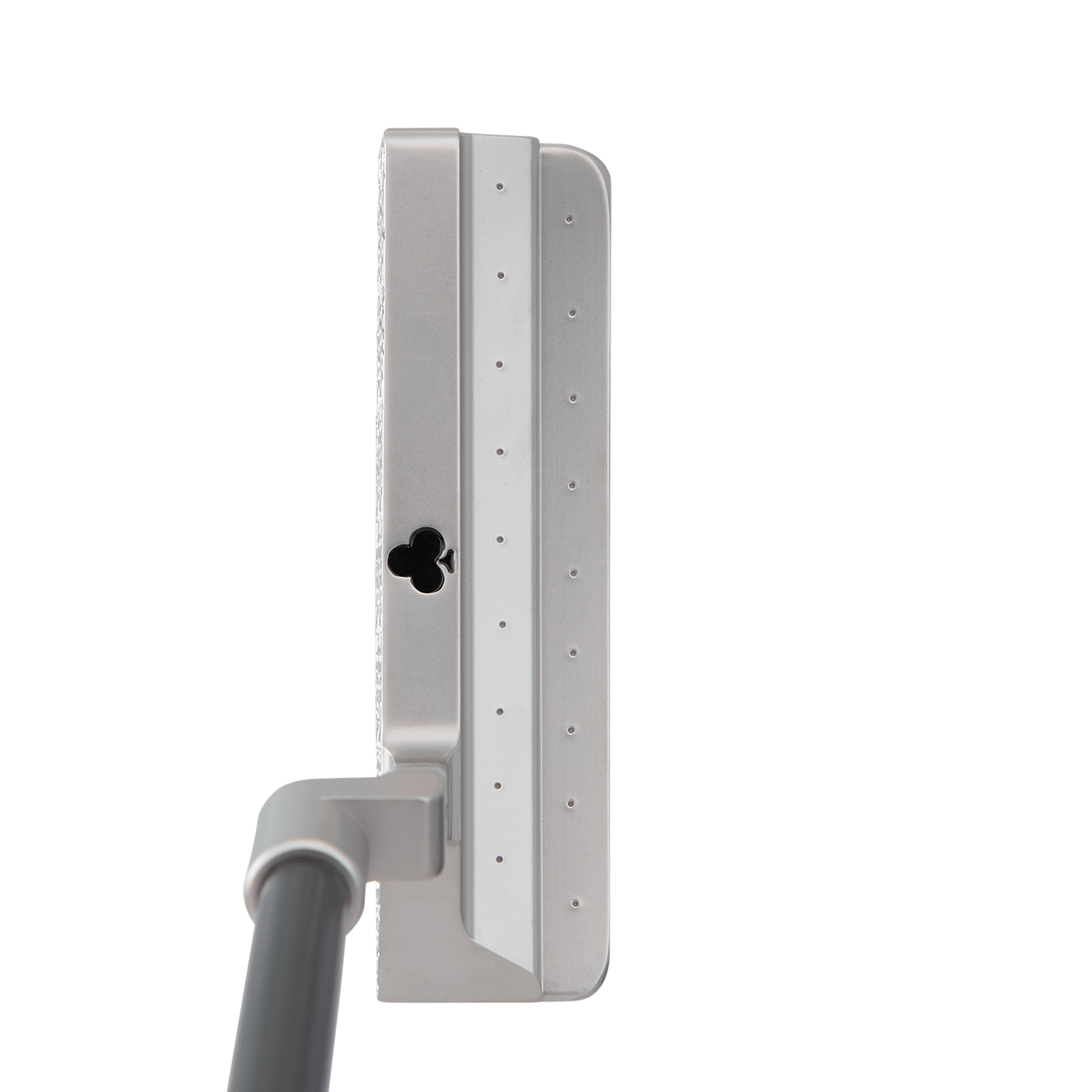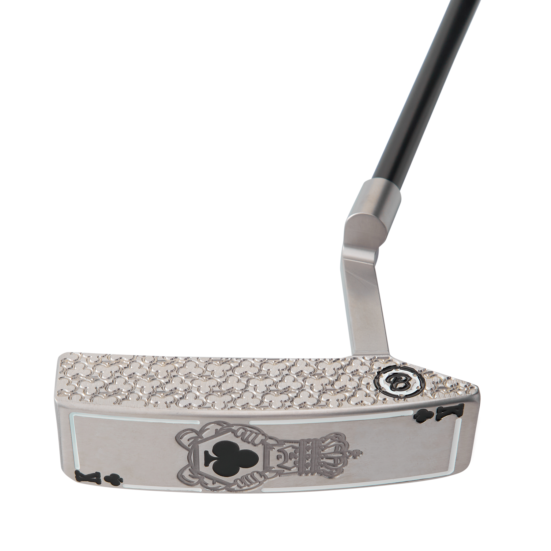 Crowned in luck, the King always wins! This 1-of-1 DASS 3-Step Jam was precision milled to 344 grams and has an intricate polished full fancy over Flymill facemilling. Finished with stamped snow, a club suit alignment and plumbers neck. This 1-of-1 putter comes complete with a matte black shaft, black HIVE Gripmaster perforated leather grip and The Shooter Wizard Blade Putter Headcover.