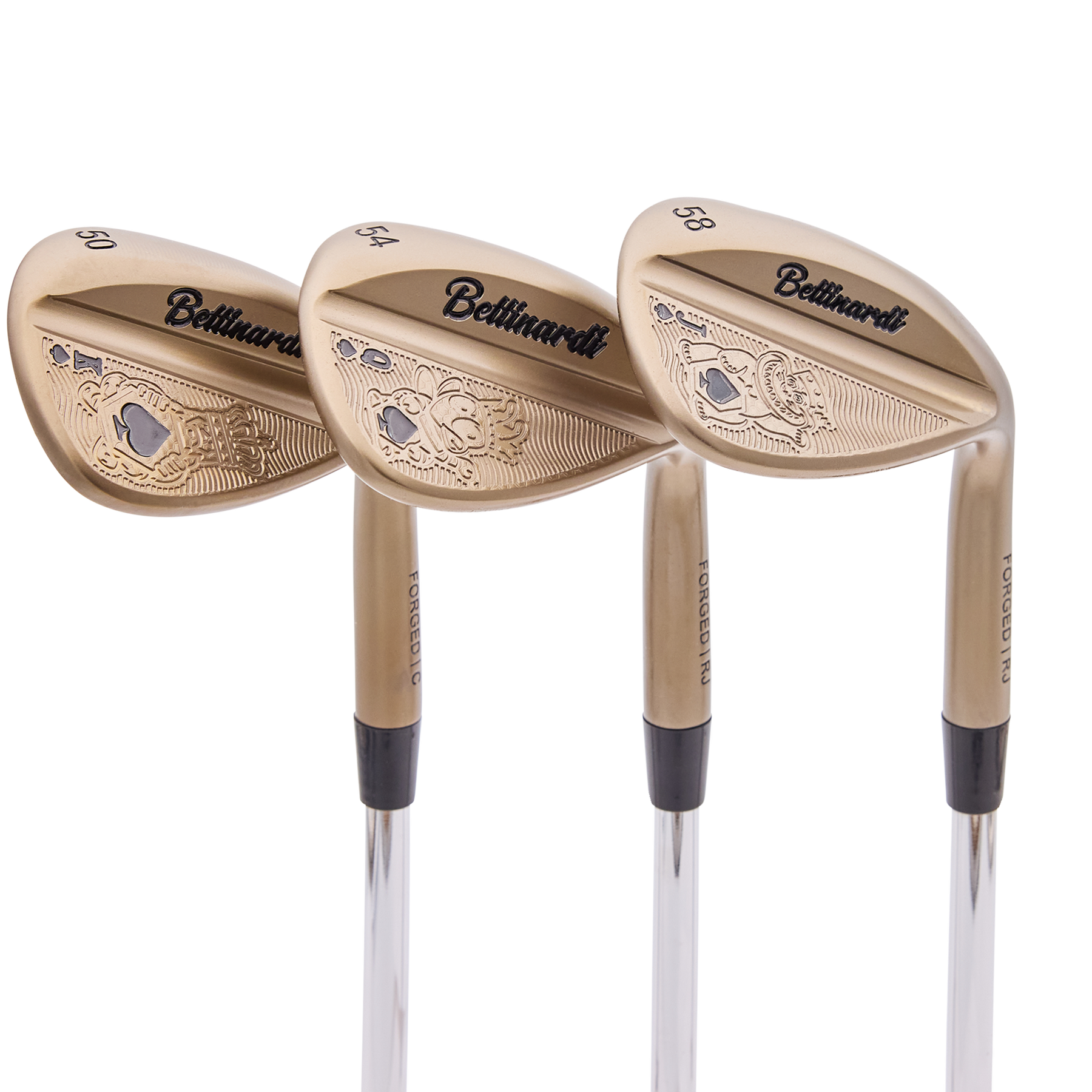 Play your cards right! These HLX 6.0 Wedges showcase our Lucky Hand Multi Icons. Each wedge features our King of Spade Wizard, Queen of Spade Stinger and Jack of Spade Fat Cat ready to gamble your fortunes. Featured in our Gold Flame finished and with black paintfills, this wedge set includes 50°, 54° and 58° lofts. Limited quantities are available. Limit 1 per person. Good luck!