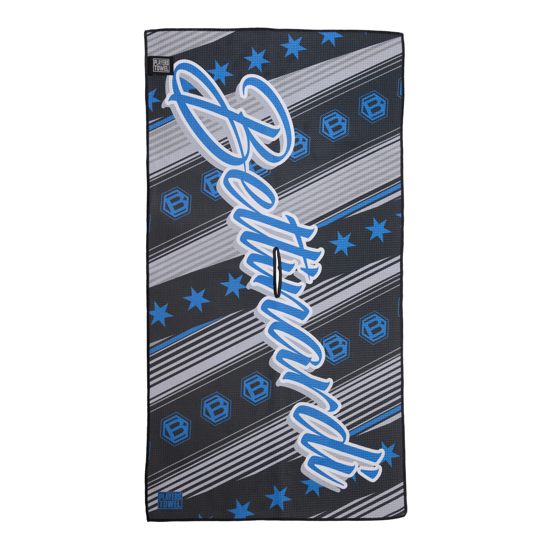 Inspired by Chicago’s four-star motif, this premium golf players towel features a bold blue, black, and gray design accented with Bettinardi script on both sides. Crafted with soft, absorbent material for maximum performance, it’s the perfect blend of hometown pride and tour-level function.