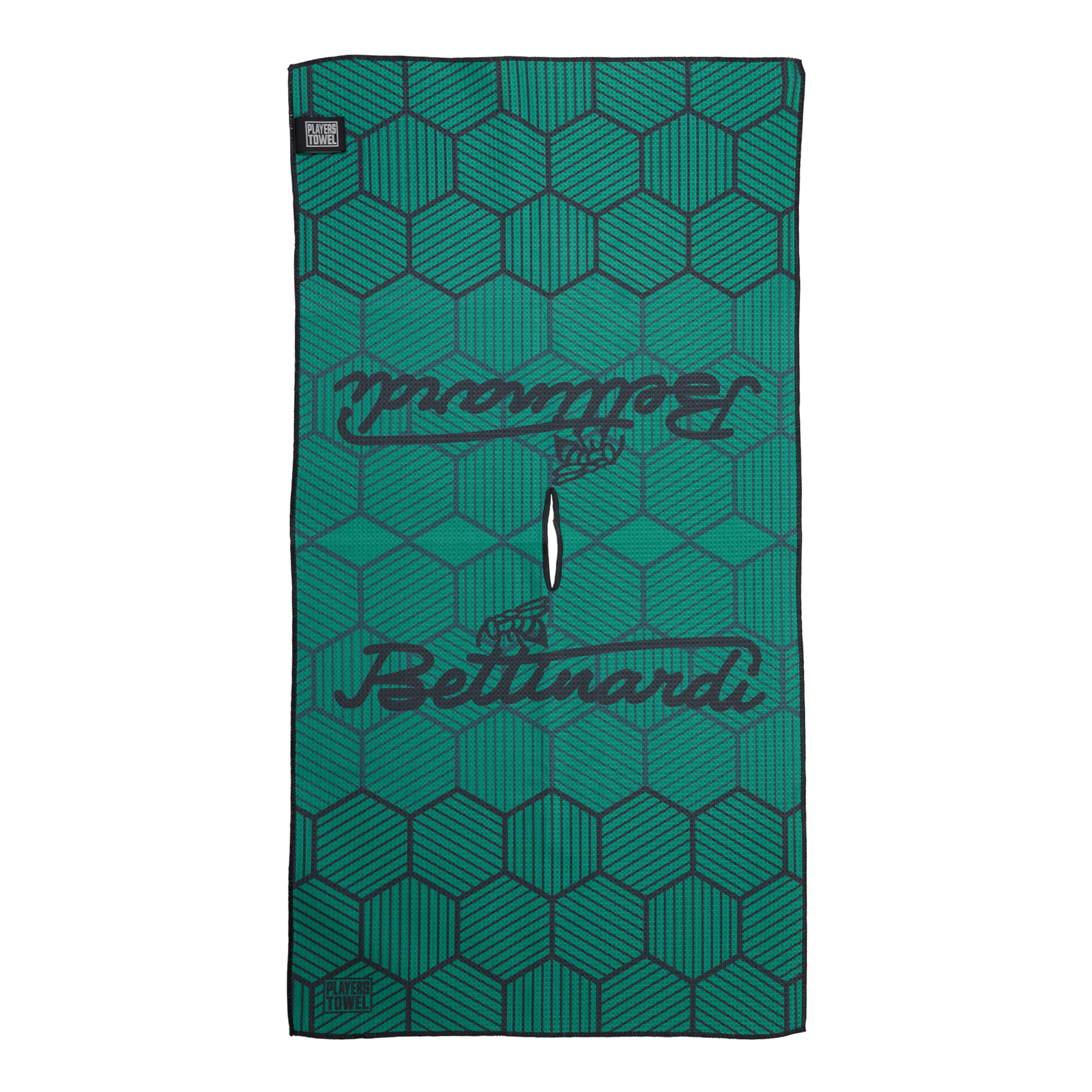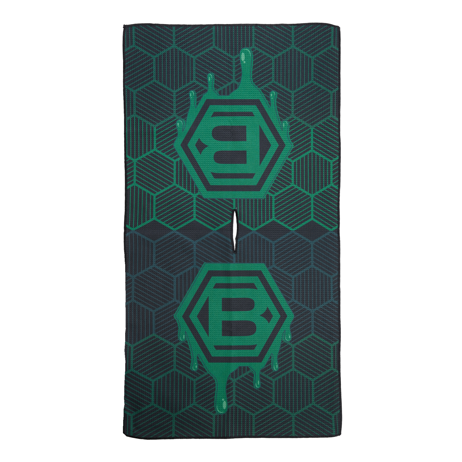 This players towel brings a vibrant pop of green to your golf bag with its bold Bettinardi script accents on front and Hex B drip design on the back. Crafted from soft, absorbent microfiber, it keeps your clubs and hands clean and dry from tee to green while adding standout style to your gear.