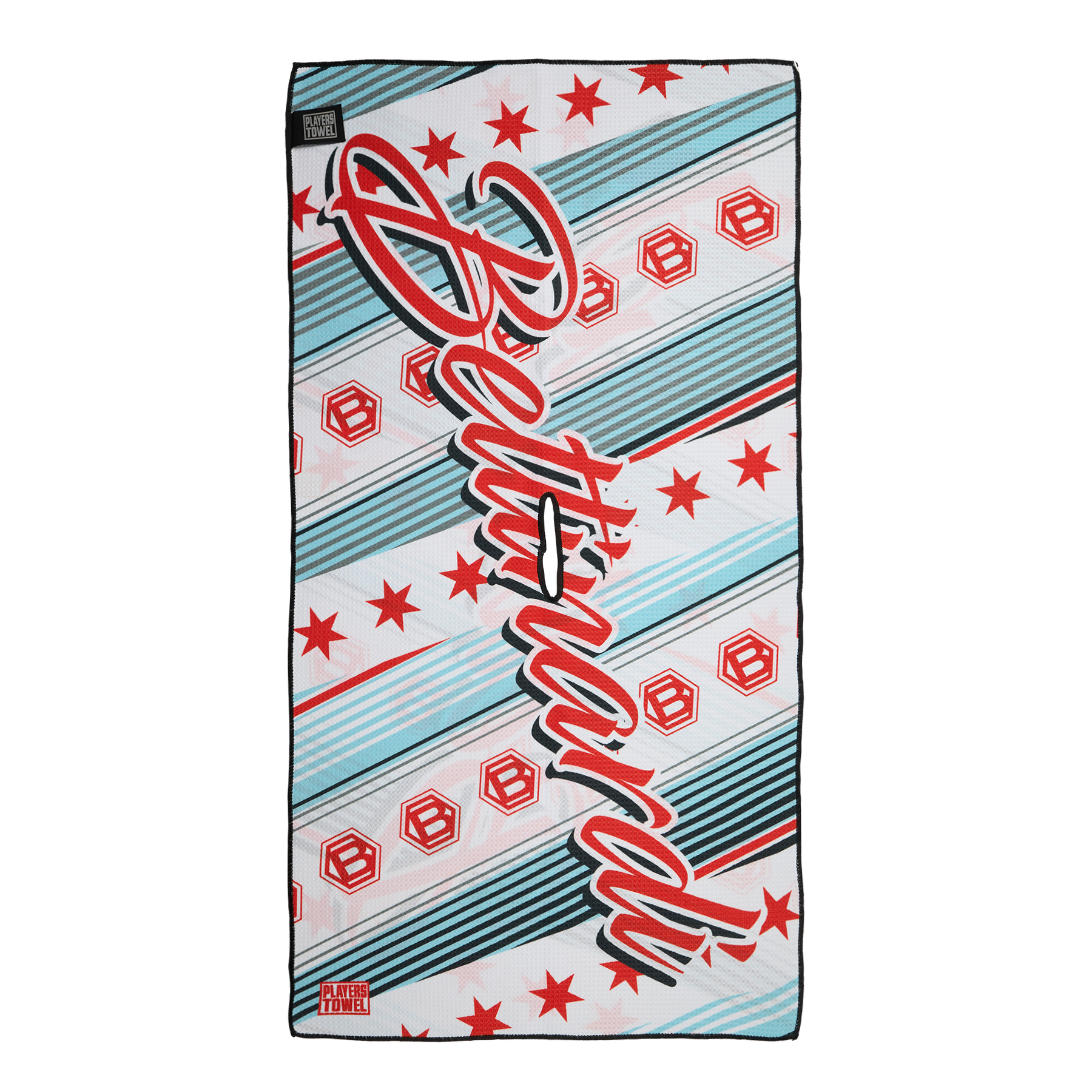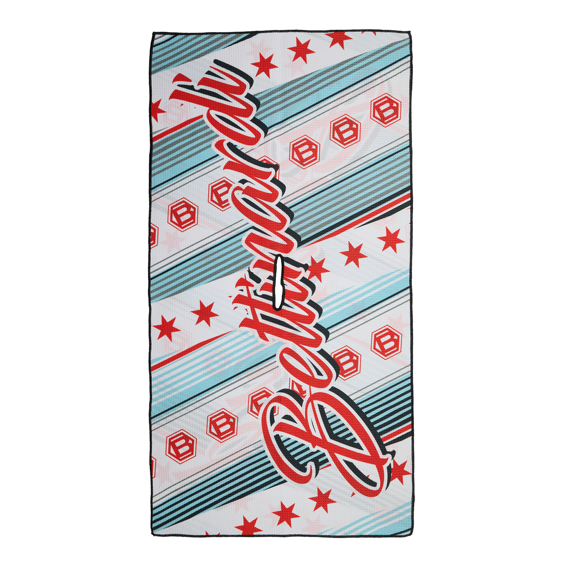 Inspired by Chicago’s four-star motif, this premium golf players towel features a bold red, white, and blue design accented with Bettinardi script on both sides. Crafted with soft, absorbent material for maximum performance, it’s the perfect blend of hometown pride and tour-level function.