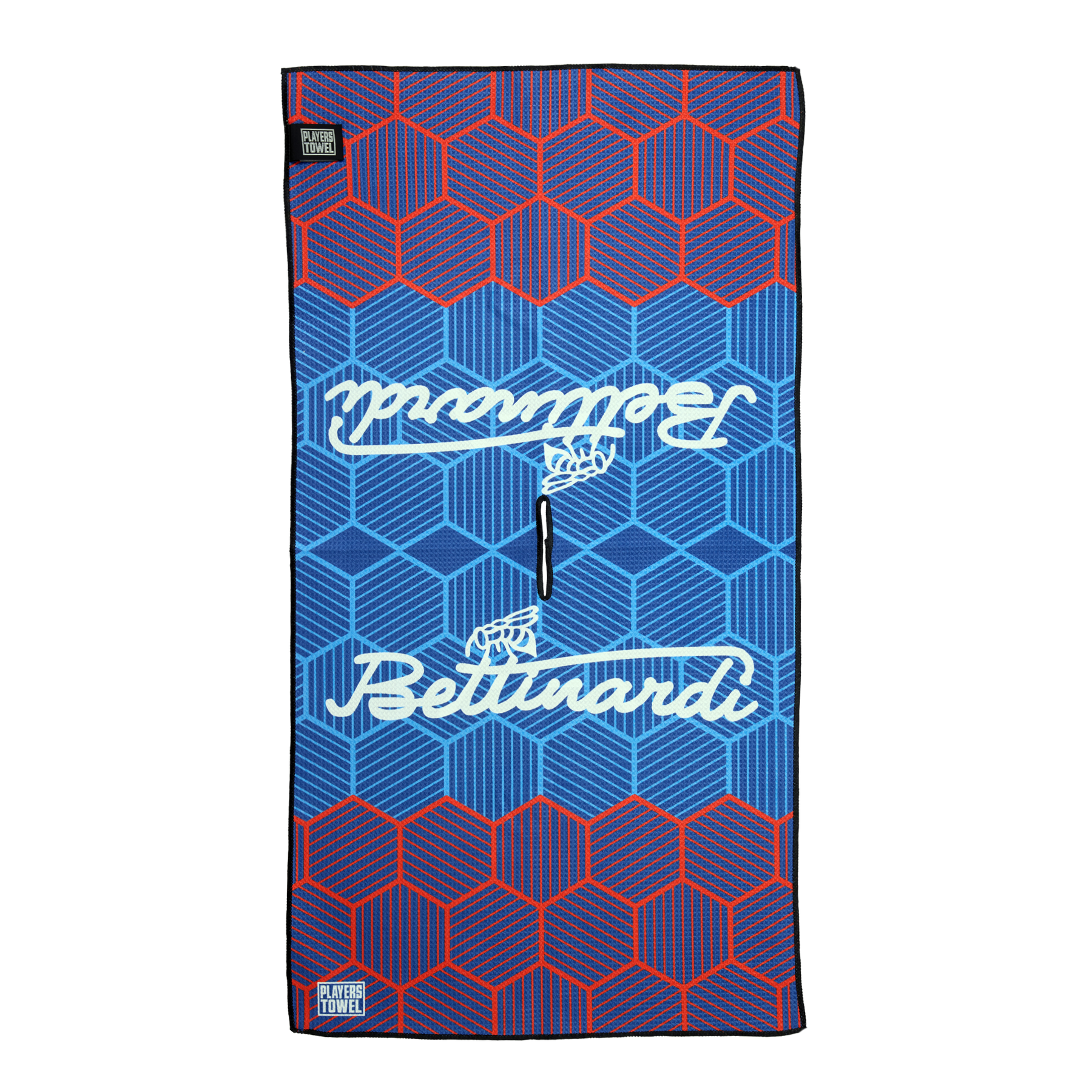This players towel brings a vibrant pop of two-tone navy and red to your golf bag with its bold Bettinardi script accents on front and Hex B drip design on the back. Crafted from soft, absorbent microfiber, it keeps your clubs and hands clean and dry from tee to green while adding standout style to your gear.