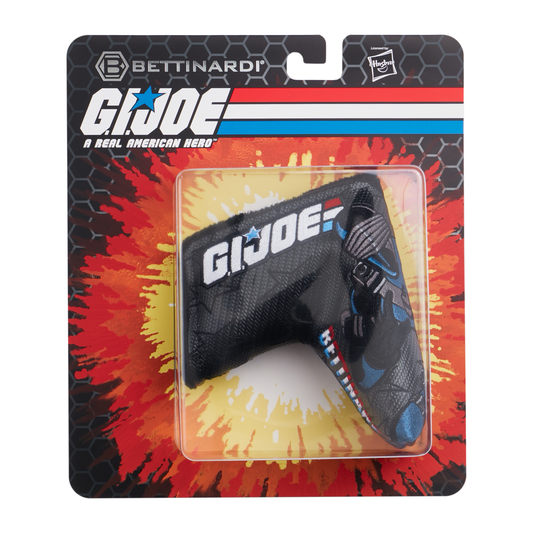 Take the fight to the front lines with the Bettinardi x G.I. Joe collection! This blade putter headcover features Snake Eyes - one of the most formidable members of the G.I. Joe team. He specializes in martial arts and is known for taking down Cobra strongholds all on his own. This blade putter headcover is stitched on a black carbon fiber base with black stars across, the signature G.I JOE symbol on the side, and our tri-color Bettinardi wordmark underneath. Limited quantities are available. Limit 1 per person. Good luck!