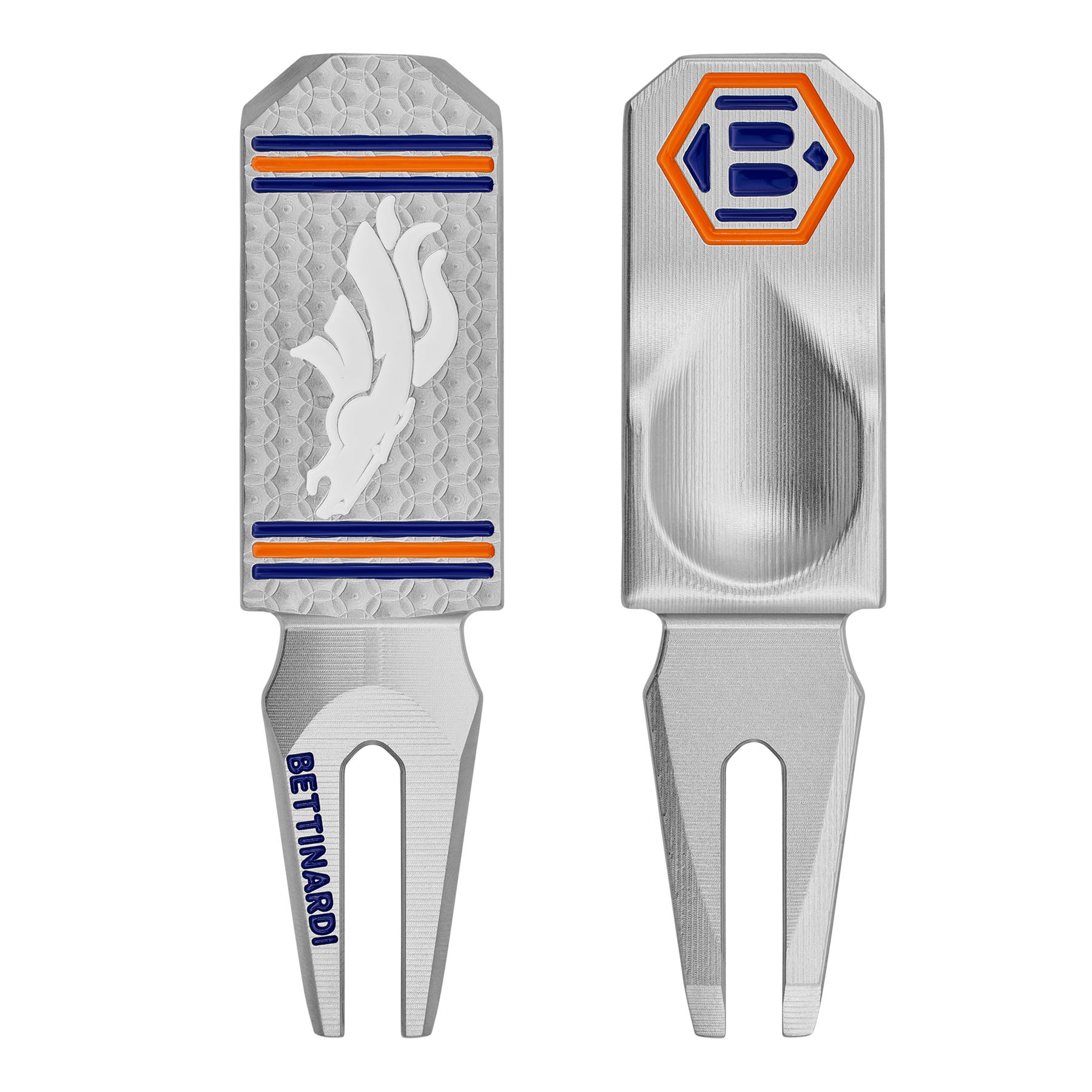 Go Broncos! This Diamond Blast divot tool features the Denver Broncos logo milled over Micro Honeycomb™ on the front, with a Hex B on the backside above the thumb contour in navy and orange paint fills. Limited quantities are available. Please allow 5 days for this item to ship.