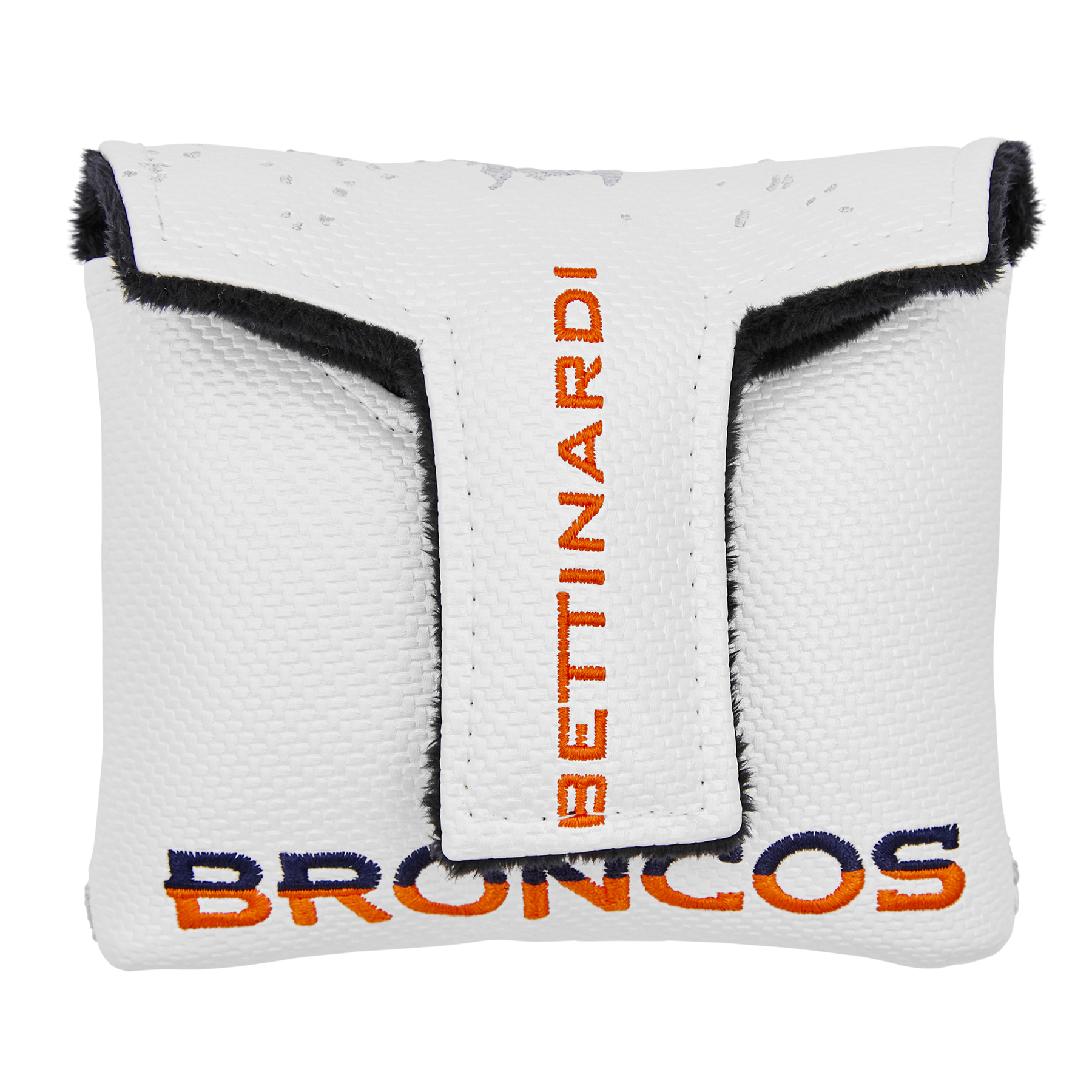 Go Broncos! Featuring a black plush interior with a magnetic closure, this mallet putter headcover protects your putter while showcasing your Denver Broncos pride on every green. Stitched on a white carbon fiber base this headcover showcases the Denver Broncos logo, with embroidered gray running horses and "Broncos" on the reverse. Limited quantities available. Please allow 6-8 weeks for this item to ship.