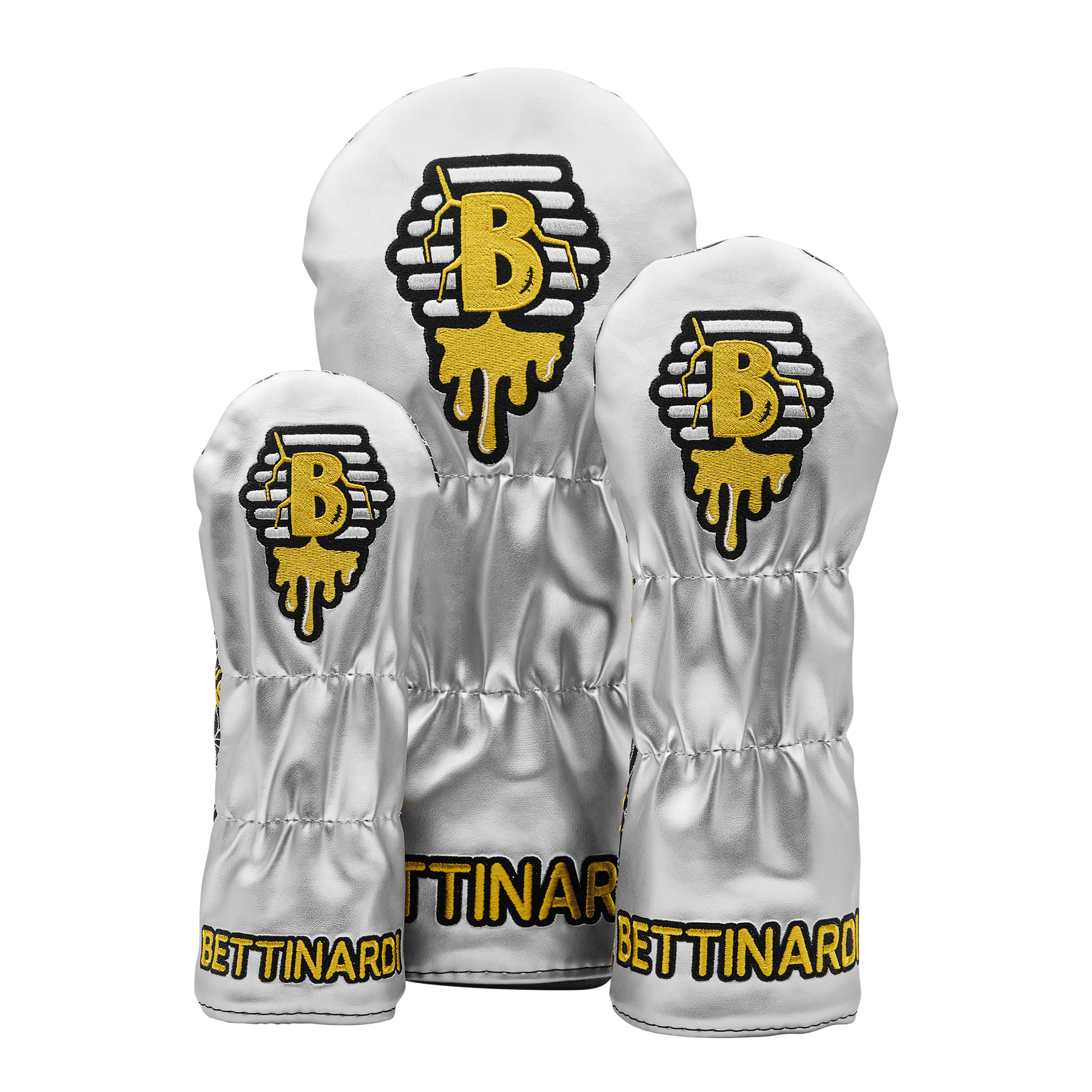 No use crying over spilled honey! This wood set displays the Unlucky Stinger with his broken honey pot embroidered in grayscale over a pattern of silver webs and gold X's on each piece. Finished with a black plush interior, this set brings all the boldness, even when luck runs out. Limited quantities are available. Limit 1 per person. Good luck!